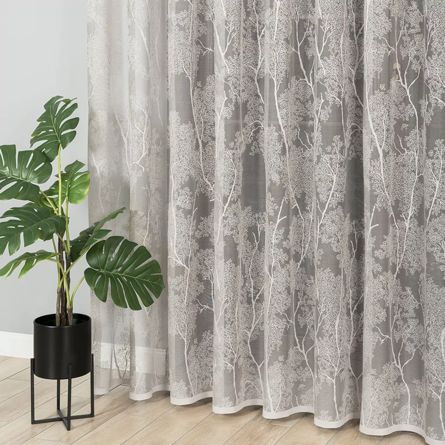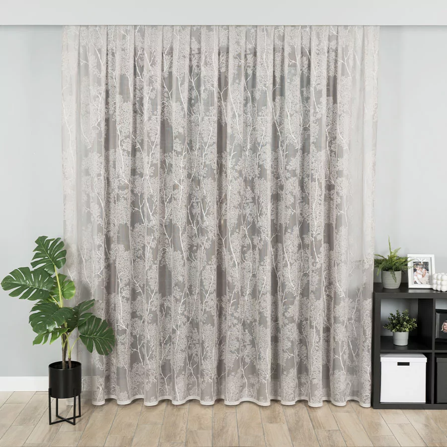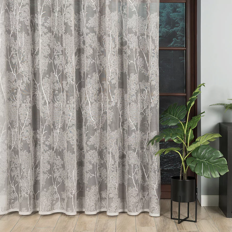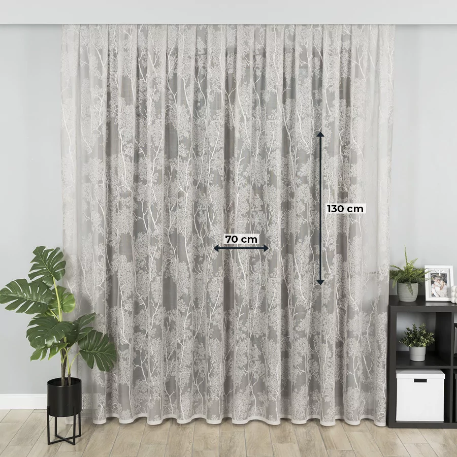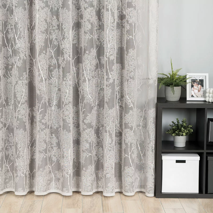Firanka żakardowa w kolorze białym i szarym. Dostępna w metrażu co oznacza, że szerokość jest dowolna, dzięki czemu dopasujesz ją dokładnie do swojego okna. Najwyższa jakość przędzy żakardowej idealnie wkomponuje się w aranżację wnętrz nowoczesnych jak i tych urządzonych w klasycznym stylu. Firanka pięknie się układa, nie wymaga prasowania i można ją prać w pralce w niskiej temperaturze. Cechuje ją dobra przepuszczalność powietrza i promieni słonecznych.