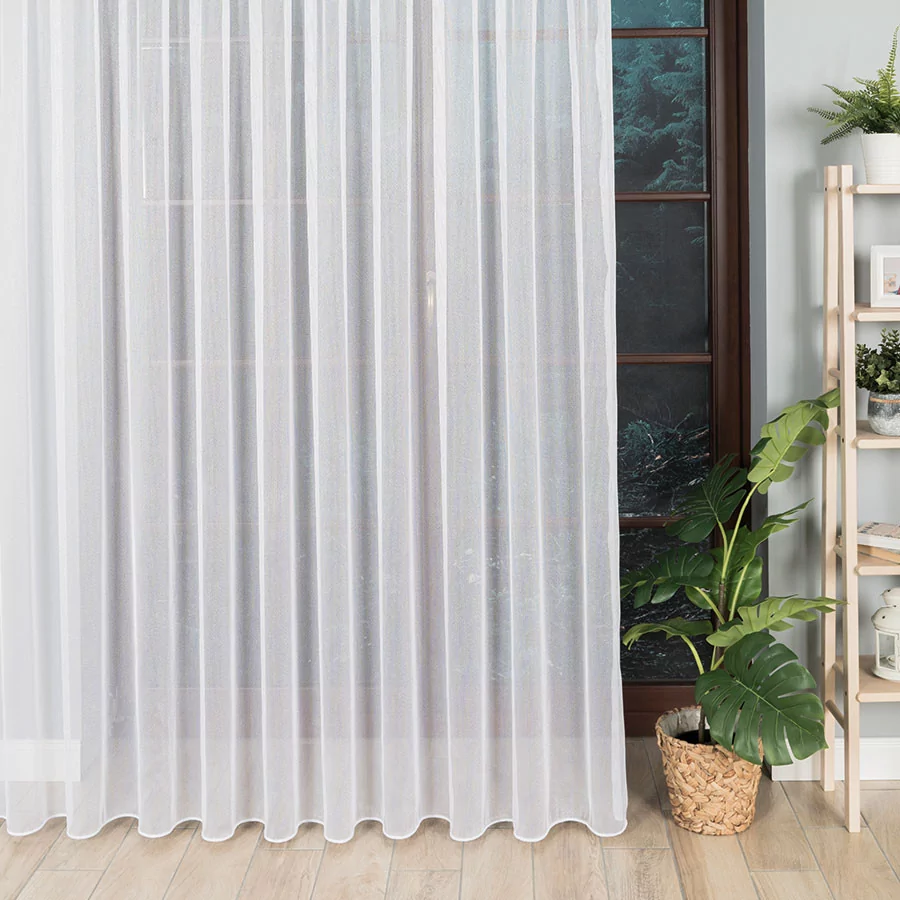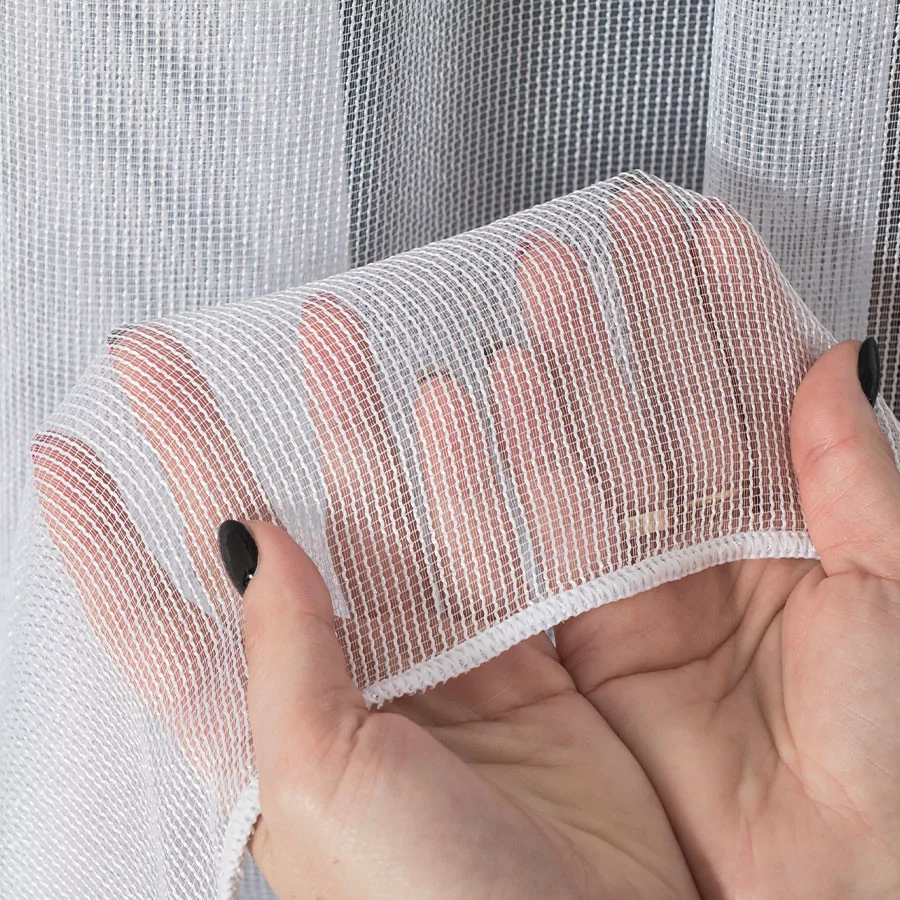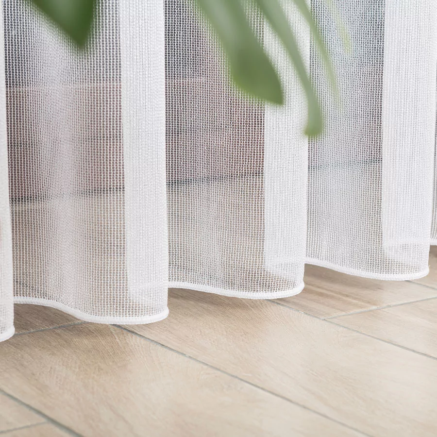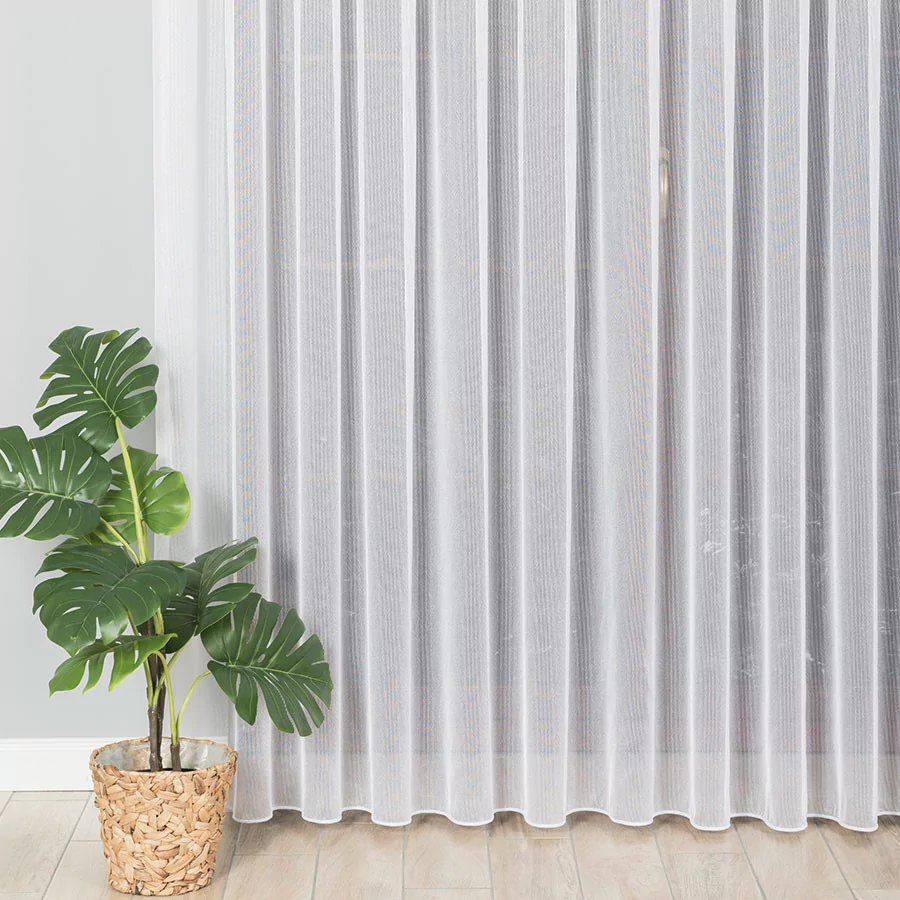 Firanka metrażowa, bardzo dobrze przepuszczająca powietrze i promienie słoneczne. Miękka dzianina fantazyjna w kolorze białym, o rzadkim splocie, pięknie układa się na różnego rodzaju marszczeniach. Idealna propozycja na zwieńczenie procesów aranżacyjnych w pokojach dziennych i salonach. Przerzedzony splot delikatnego, siateczkowego podkładu to prosty i minimalistyczny wzór, który doda subtelności i przytulności wnętrzom. Firankę możesz zamówić z usługą szycia w naszej profesjonalnej szwalni - wybierz wykończenie, podaj wymiary, a otrzymasz uszytą i gotową do zawieszenia firankę.