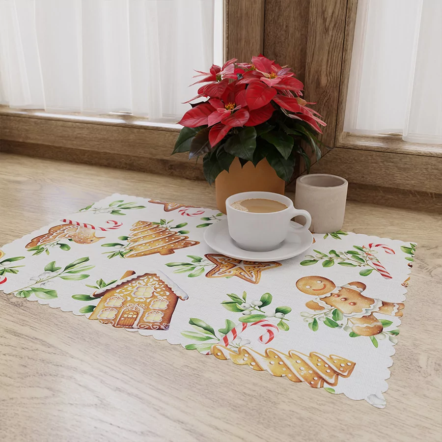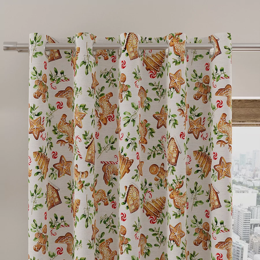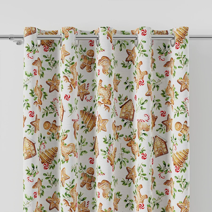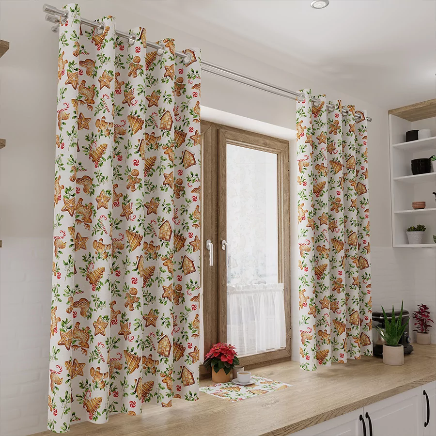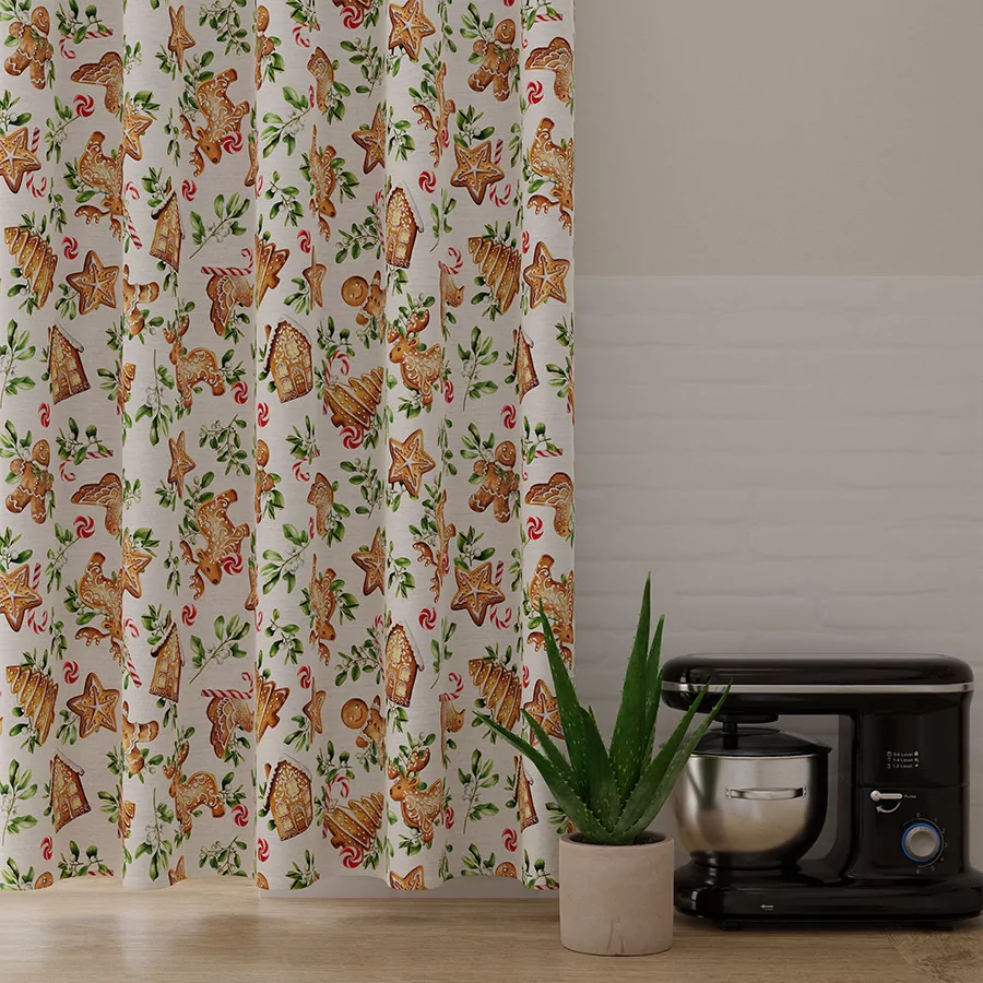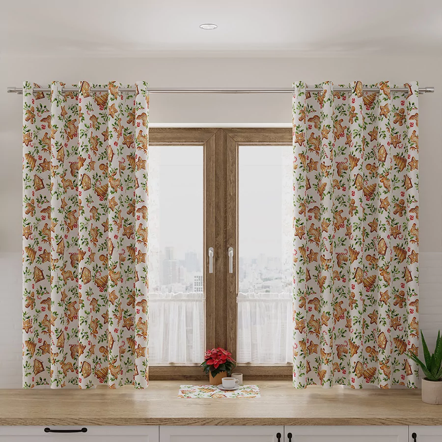 PIERNIKI to urocza tkanina dekoracyjna w pięknie dobranej kolorystyce, który idealnie uzupełni świąteczny wystrój Twojego wnętrza. Wykonana została z najwyższej jakości wodoodpornego podkładu NINA. Jesteśmy pewni, że spełni wszystkie Twoje świąteczno-aranżacyjne potrzeby i będzie cudownie wyglądać w dowolnym pomieszczeniu zarówno w oknie jako zasłony jak i dekoracja stołu w postaci nakładek, bieżnika lub obrusa. Kupując nasz produkt możesz stworzyć spójną i harmonijną aranżację pokoju, która będzie zachwycać gości.
