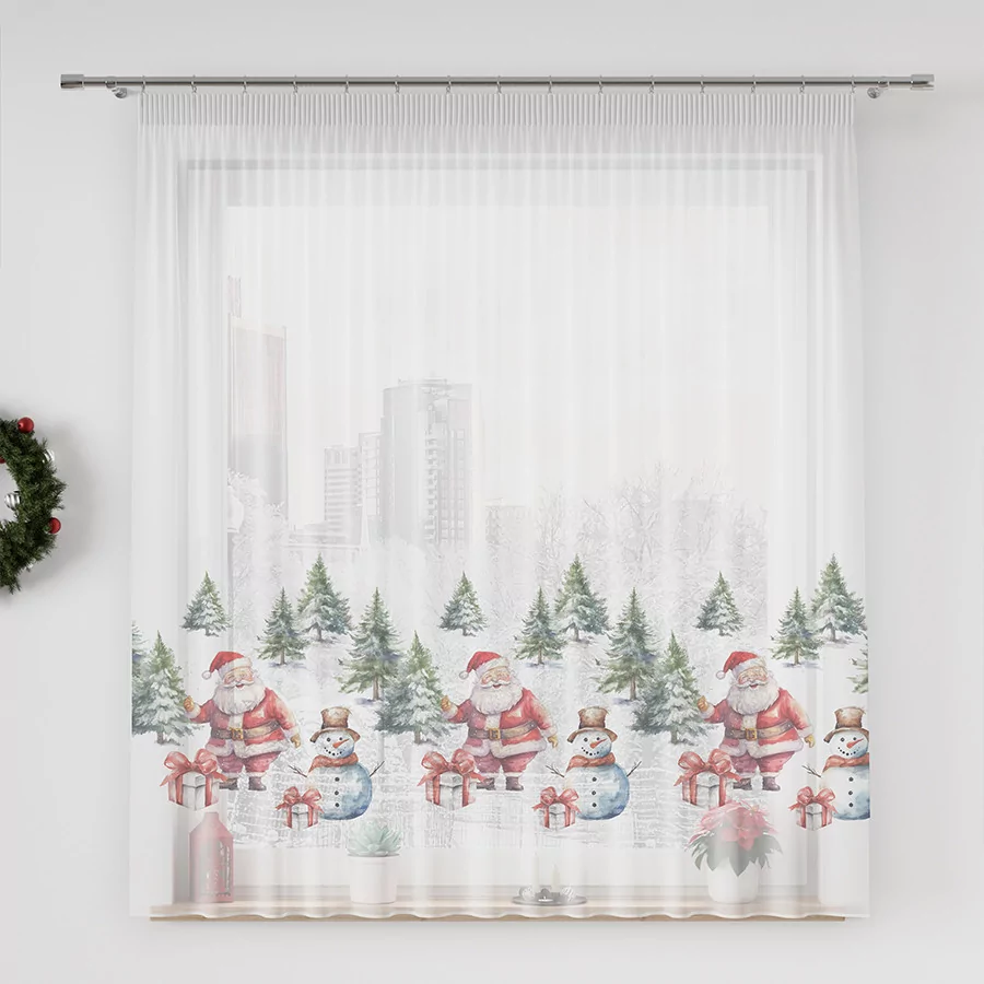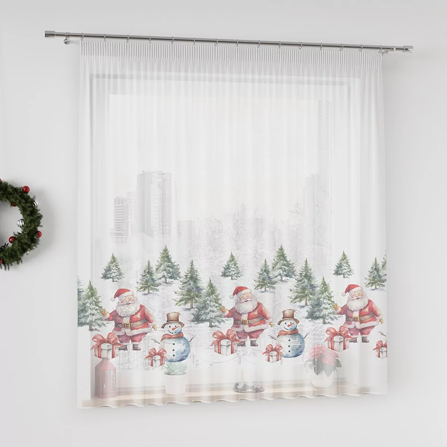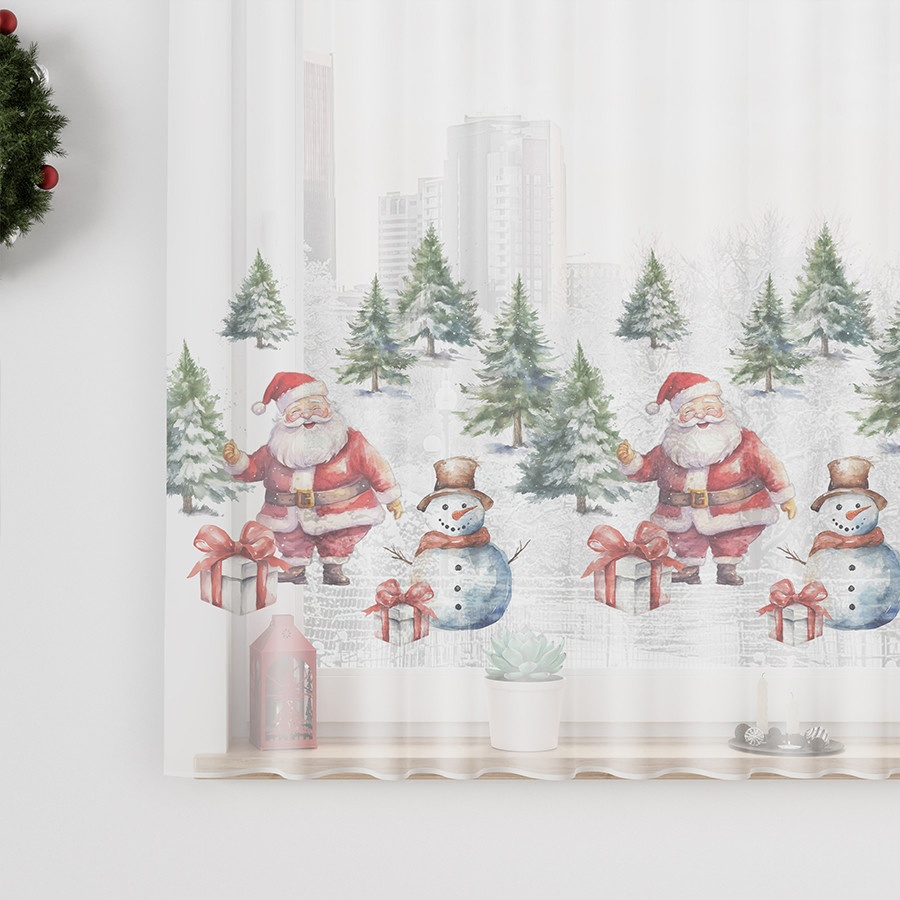 Firanka z ołowianką MIKOŁAJ w typowo zimowej kolorystyce oraz z pięknym świątecznym wzorem, zdobiącym dolną część gładkiego, białego woalu to wspaniała dekoracja świątecznego wystroju okien zarówno pokoju dziecięcego jak i salonowego. Ciekawy wzór w świątecznej tematyce i modna kolorystyka doskonale ozdobią każde wnętrze i podkreślą jego świąteczny klimat.