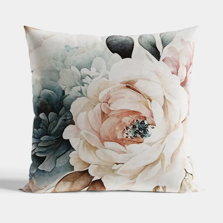 Przyjemna w dotyku poszewka dekoracyjna tkaniny typu VELVET w subtelny, pastelowy kwiatowy wzór.
