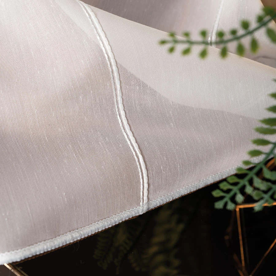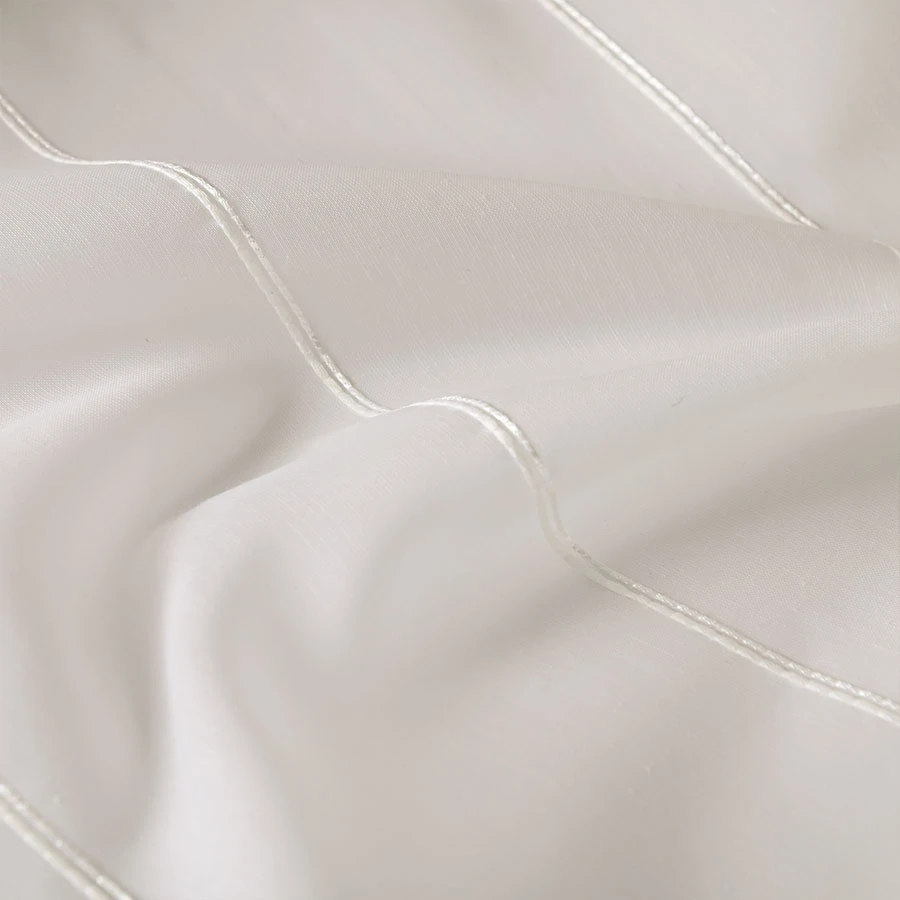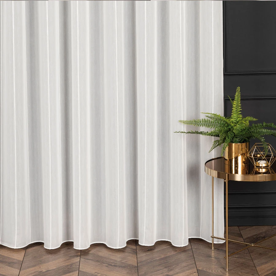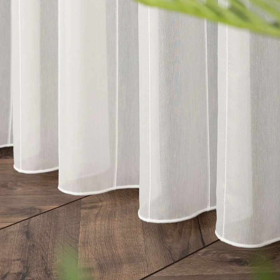ALMA to gładka firana fantazyjna z ozdobnymi, pionowymi przeszyciami. Dostępna w kolorze białym i kremowym. Mięciutka etamina doda pomieszczeniu lekkości, optycznie je powiększając. Zwiewny materiał w połączeniu z oryginalnym zdobieniem w postaci pionowych pasów w kolorze białym i srebrnym zachwyci miłośników zarówno wnętrz urządzonych w stylu nowoczesnym jak i klasycznym.