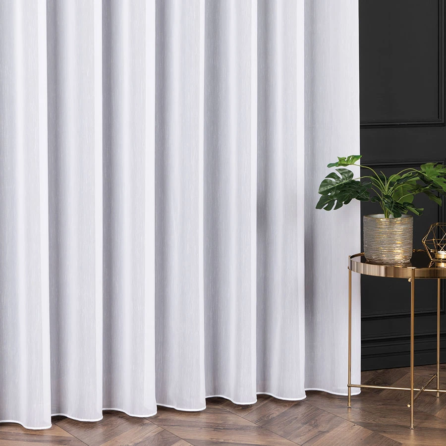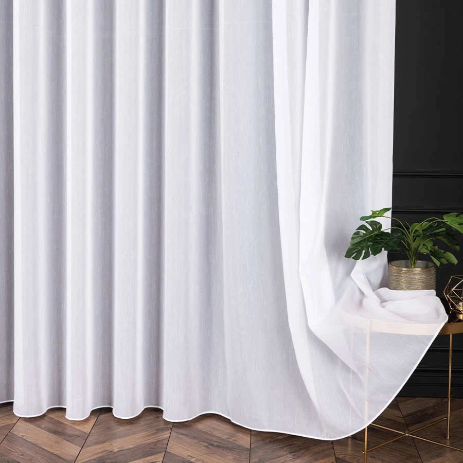 Pięknie układająca się firanka metrażowa z efektem deszczyku. Bardzo dobrze przepuszcza powietrze i promienie słoneczne. Dostępna w kolorze białym.
