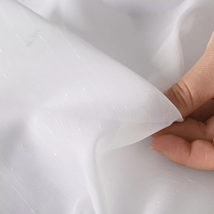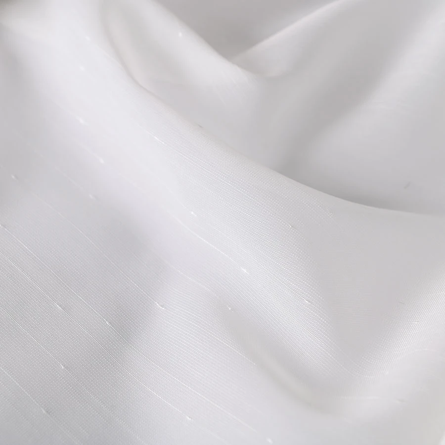 Fantazyjna firana na podkładzie z mięciutkiej etaminy, wykończona oryginalnym zdobieniem w postaci grubszych przeszyć, tworzących subtelny efekt deszczyku. Zagęszczony splot delikatnej, miękkiej dzianiny fantazyjnej umiarkowanie przepuszcza powietrze, świetnie uchroni przed słońcem i wiatrem jednocześnie nie tracąc na swej niezwykłej lekkości i zwiewności. Etamina doda pomieszczeniu lekkości, optycznie je powiększając. W połączeniu z ciekawym wykończeniem w formie deszczyku, które pięknie ozdabia całą powierzchnię niezwykle lekkiej firanki o mlecznej, półprzezroczystej strukturze, możemy stworzyć niebanalną aranżację okienną w pokojach dziennych i salonach. Jeśli gustujesz w prostych, aczkolwiek efektownych dekoracjach okiennych, to firanka fantazyjna MERYL z pewnością spełni wszystkie Twoje aranżacyjne oczekiwania.