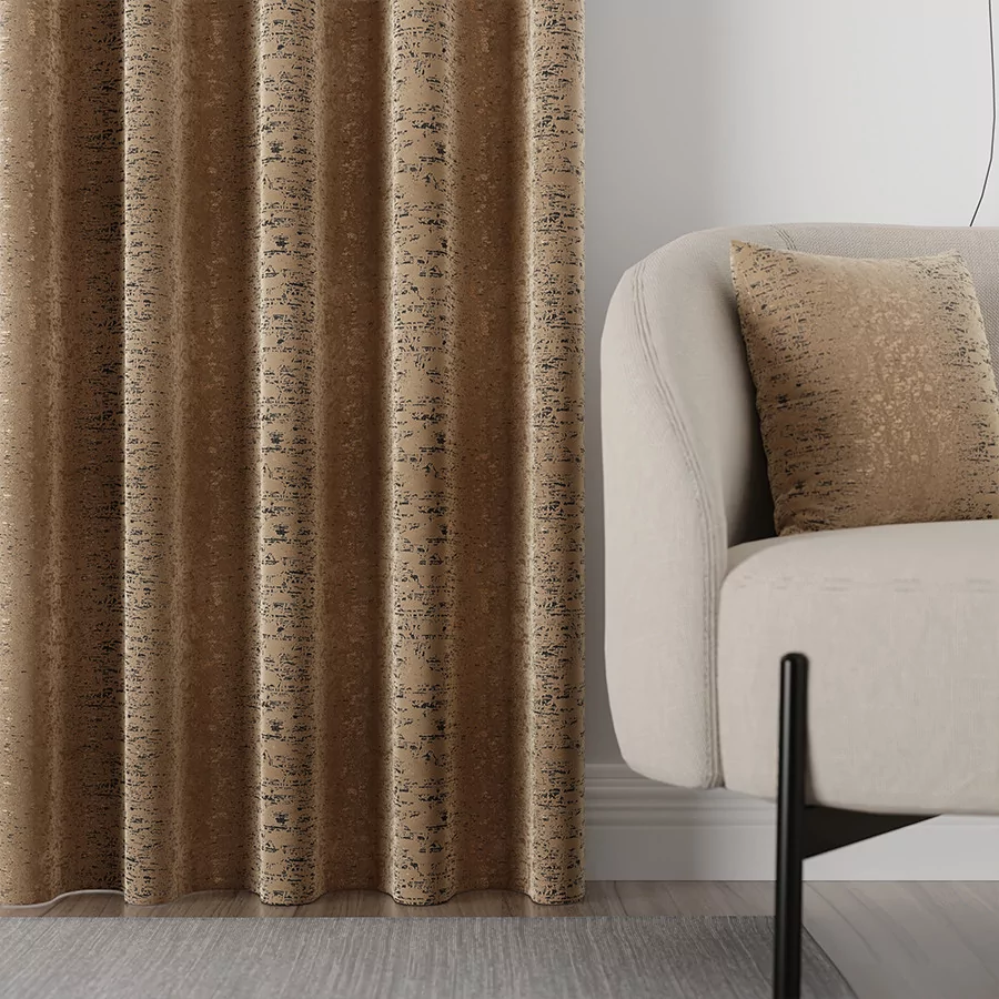 Tkanina dekoracyjna z żakardowym zdobieniem. ODYS to półzaciemniający materiał, dostępny w pięknych, stonowanych kolorach a każdy z nich zdobiony jest ciekawym wzorem w kolorze czarnym. Miękka i miła w dotyku tkanina dekoracyjna ODYS pasuje do wnętrz nowoczesnych, jak i tych urządzonych w klasycznym stylu.