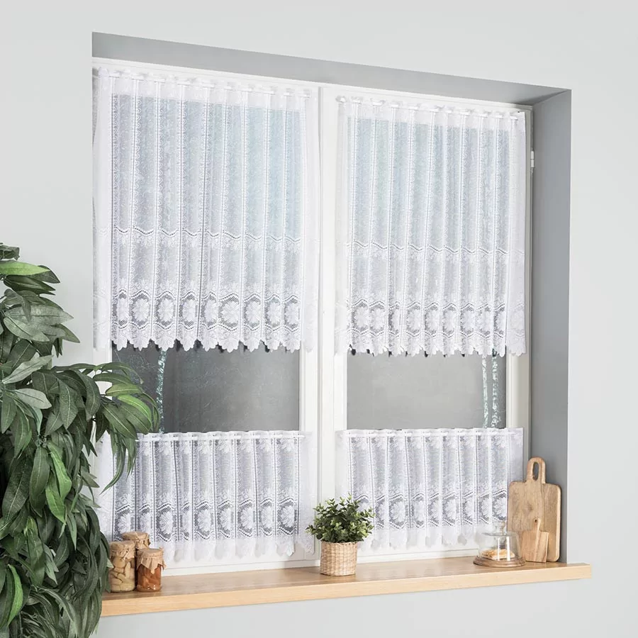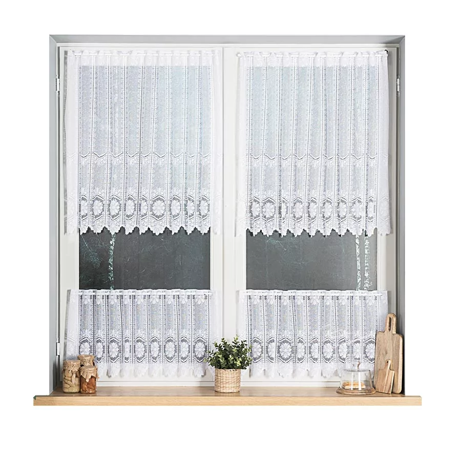 Przywitaj w swojej kuchni elegancję i styl dzięki zazdrostce żakardowej 018532! Niezależnie od wysokości Twojego okna, mamy idealne rozwiązanie dla Ciebie. Nasza zazdrostka jest ozdobiona delikatnym, ażurowym motywem roślinnym, który doda przytulności i uroku Twojemu wnętrzu. Co więcej, dzięki dostępnym oczkom na karnisz, instalacja jest szybka i bezproblemowa. Po prostu zawieś panel zazdrostki i ciesz się pięknem bez potrzeby obszycia. Wybierz zazdrostkę żakardową 018532 - doskonałe dopasowanie do każdej kuchni!