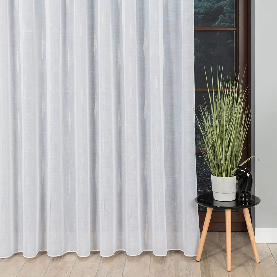 Materiał dostępny jest w metrażu, oznacza to, że możesz zamówić go w dowolnej szerokości i z dowolnym wykończeniem - podaj wymiary, a otrzymasz uszytą i gotową do zawieszenia firankę.