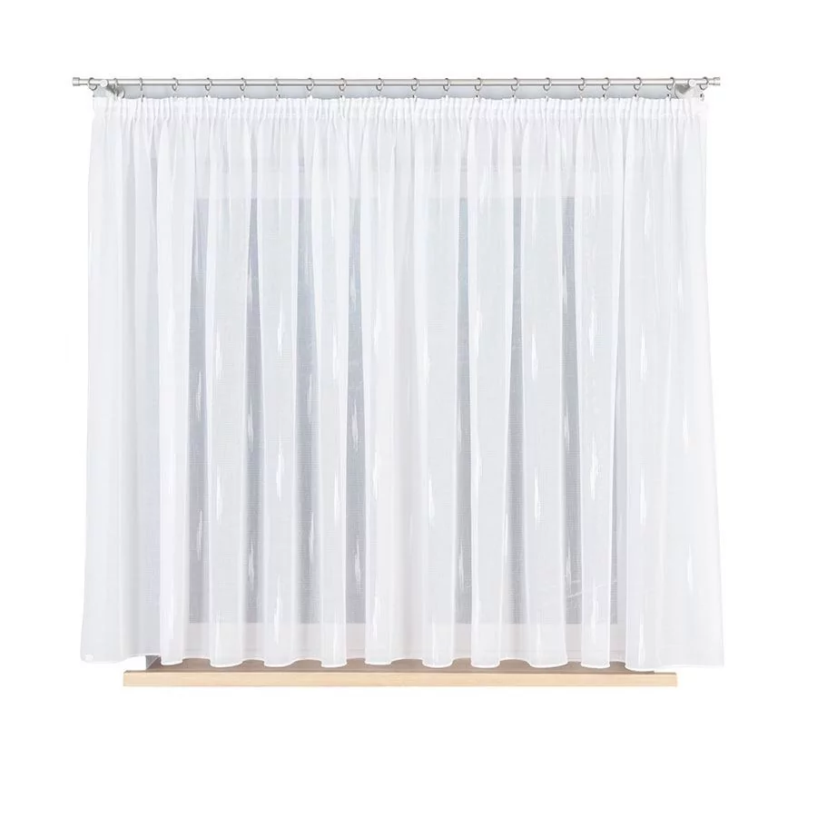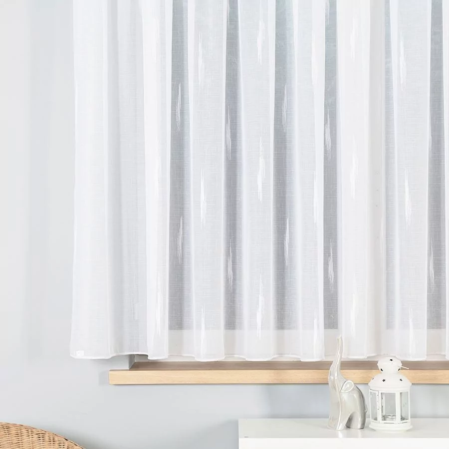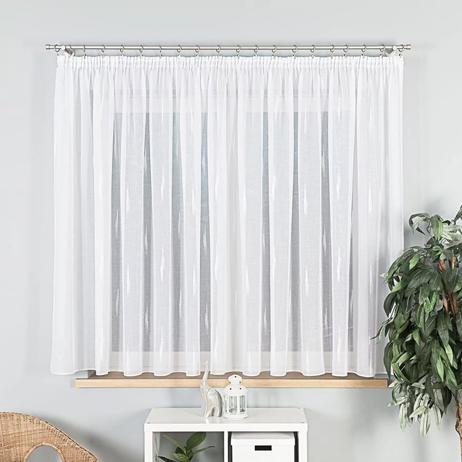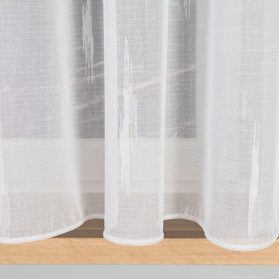 Pięknie układająca się firanka fantazyjna. Gęsty splot miękkiej dzianiny fantazyjnej umiarkowanie przepuszcza powietrze a elementy ozdobne efektownie przystrajają całą powierzchnię firany. Dolne wykończenie w formie ołowianki, która obciąża materiał i sprawia, że ładnie się on układa na różnego typu marszczeniach. Firanka 024934 dostępna jest w metrażu co pozwala nam stworzyć dekorację okienną uszytą na indywidualny wymiar.