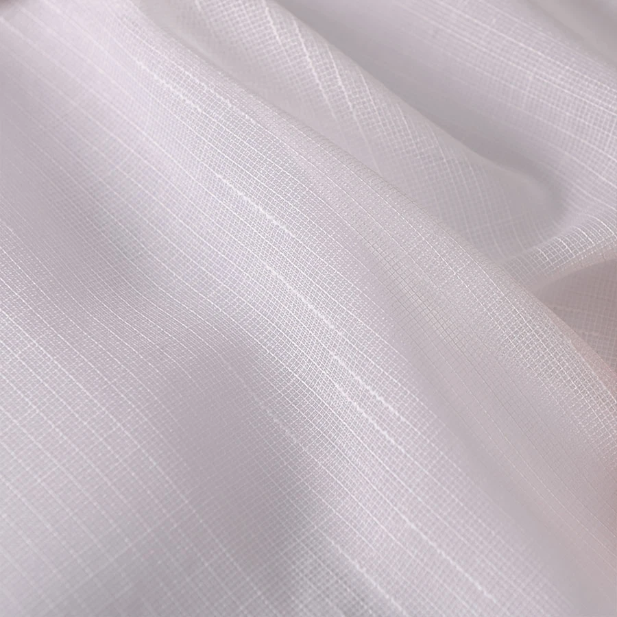 Fantazyjna firana na podkładzie z mięciutkiej siatki, wykończona oryginalnym zdobieniem w postaci grubszych przeszyć, tworzących subtelny efekt deszczyku.