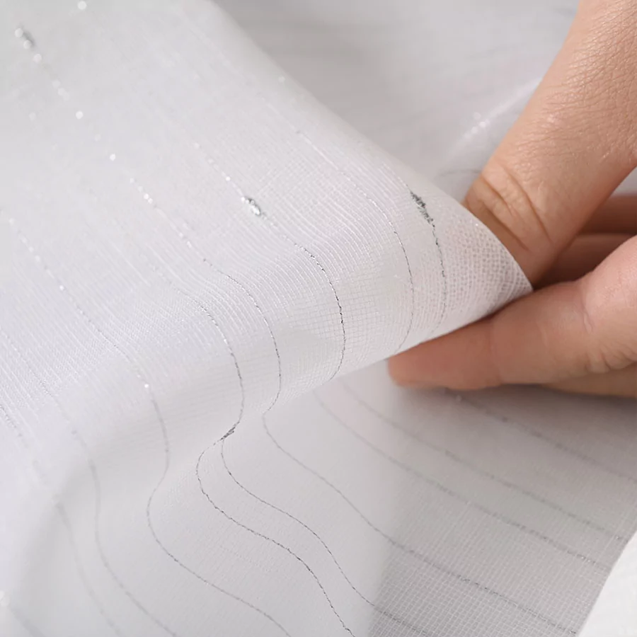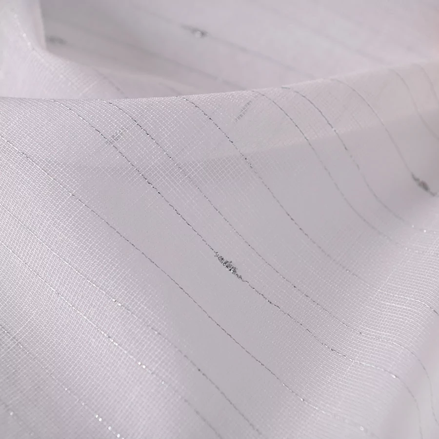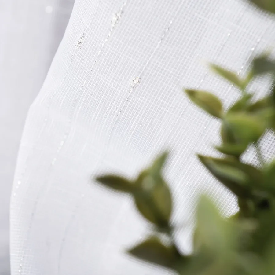 Firana fantazyjna MARLA zdobiona pionowymi pasami tkanymi ze srebrnej, błyszczącej nici. Niebywale efektowna, niezwykle lekka i pięknie układająca się na różnych marszczeniach delikatna siateczka, to wspaniała propozycja na udekorowanie wszystkich wnętrz, zarówno tych urządzonych klasycznie jak i w bardziej nowoczesnym stylu.