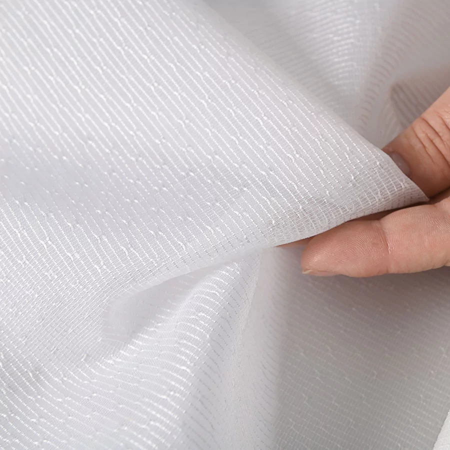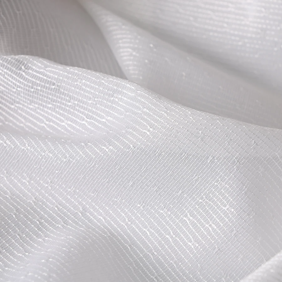 Materiał ten jest łatwy w użytkowaniu i pięknie się układa. Zagęszczony splot materiału świetnie uchroni przed słońcem i wiatrem jednocześnie nie tracąc na swej niezwykłej lekkości i zwiewności. Tak prosty i minimalistyczny wzór doda subtelności i przytulności wnętrzom.