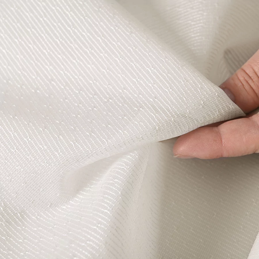Materiał ten jest łatwy w użytkowaniu i pięknie się układa. Zagęszczony splot materiału świetnie uchroni przed słońcem i wiatrem jednocześnie nie tracąc na swej niezwykłej lekkości i zwiewności. Tak prosty i minimalistyczny wzór doda subtelności i przytulności wnętrzom.