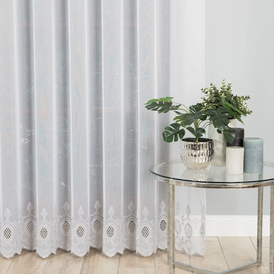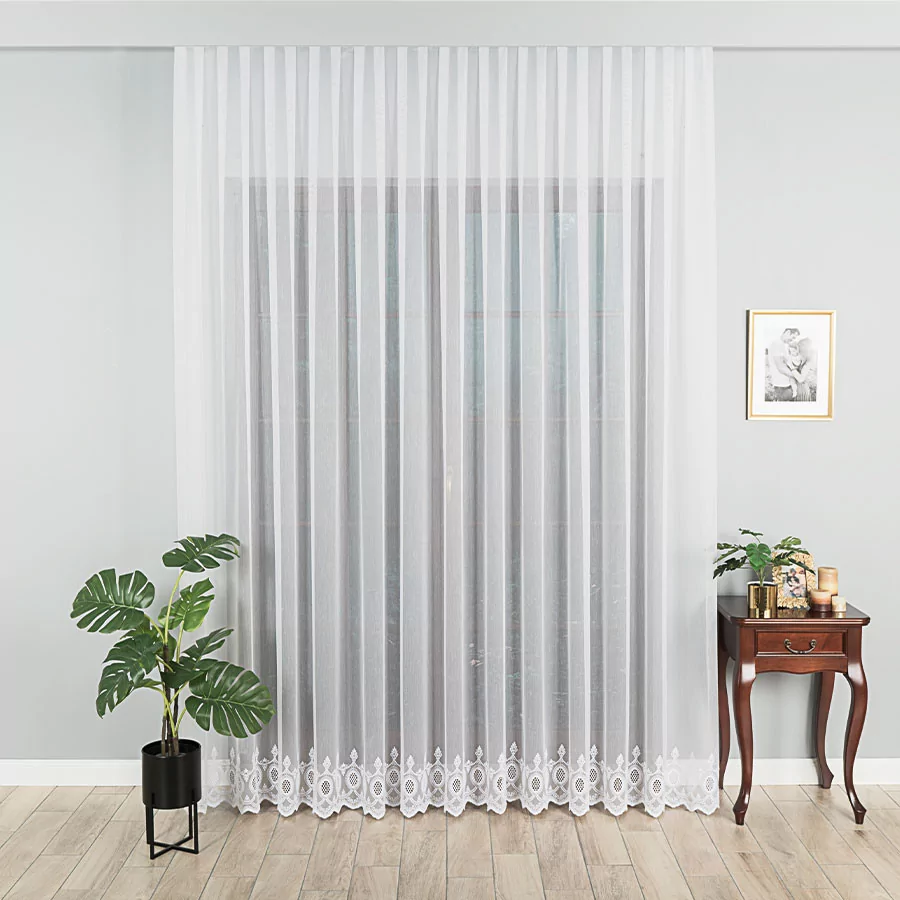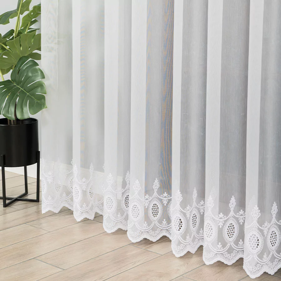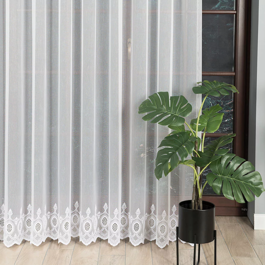 Zależy nam na zadowoleniu Klienta, dlatego wybieramy jedynie najwyższej jakości produkty polskich i zagranicznych producentów. Firanka haftowana ucinana lub szyta na indywidualne zamówienie! Nie jest to produkt gotowy, dlatego nie ma możliwości odstąpienia od umowy (zwrotu, ani wymiany), dlatego prosimy o przemyślane zakupy.