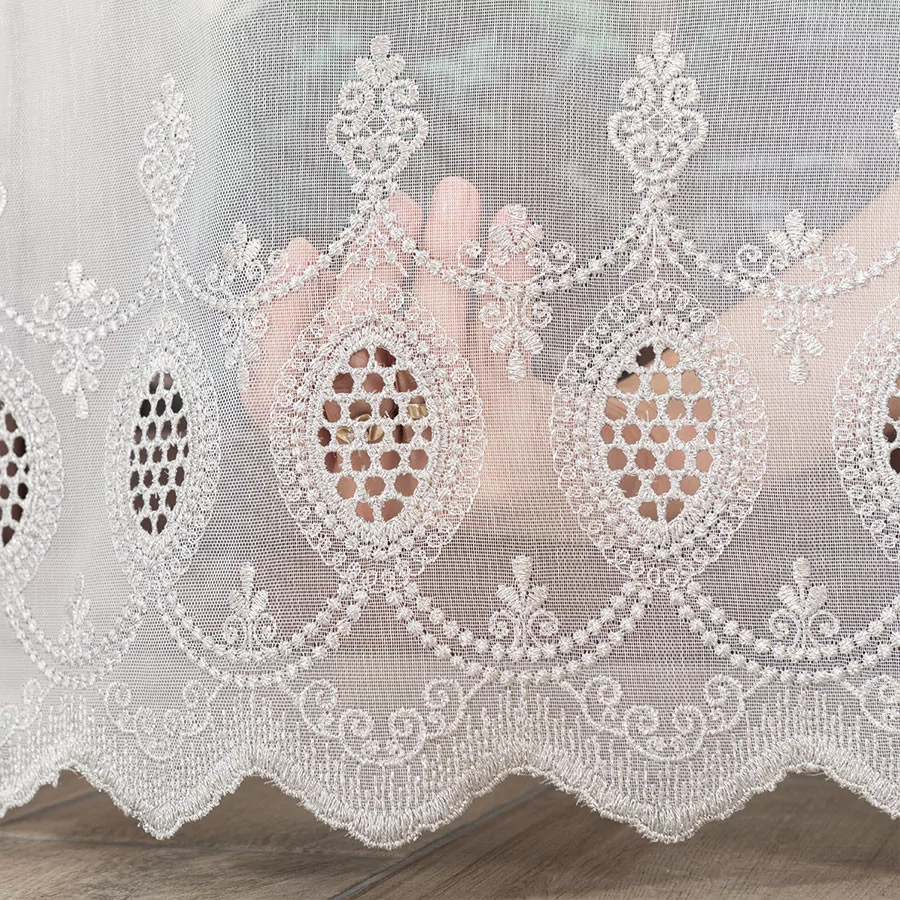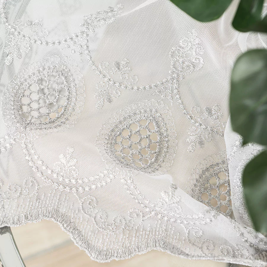 Podaruj swojemu wnętrzu niepowtarzalny urok z naszą haftowaną firanką na markizecie. Z jej eleganckim motywem na samym dole, wprowadź wspaniałą atmosferę i wyjątkowy styl do Twojego domu. Co więcej, ta piękna firanka doskonale przepuszcza światło i powietrze, tworząc przyjemną aurę w pomieszczeniu.