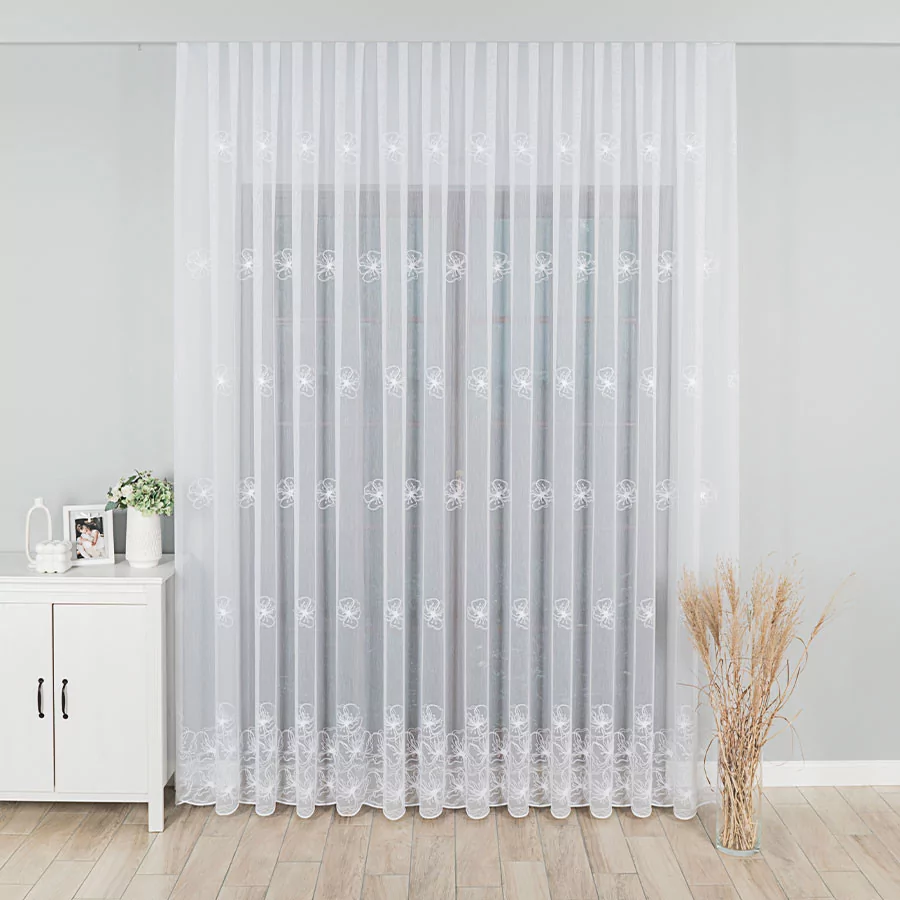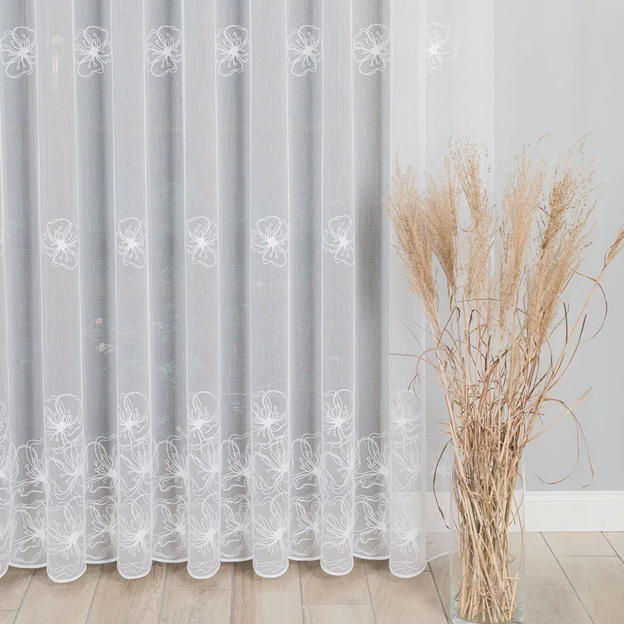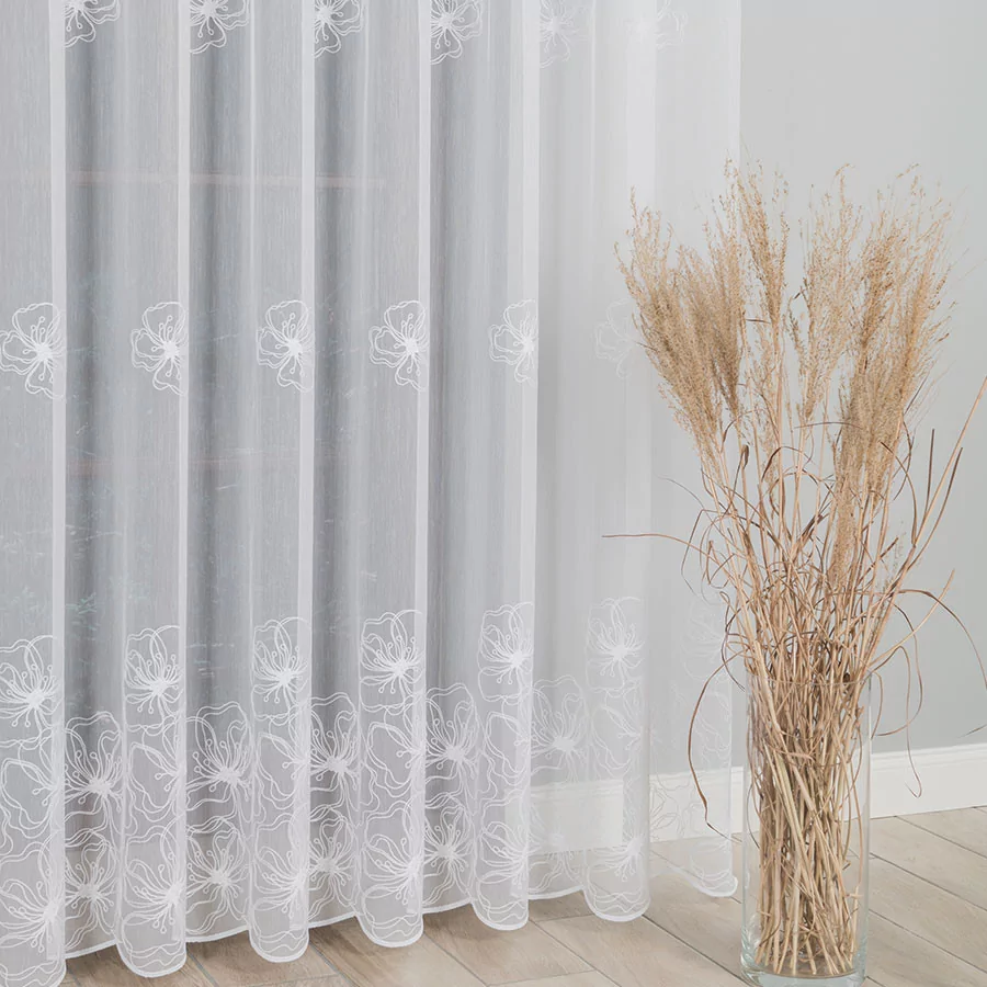 Przekształć swoje wnętrza w prawdziwe dzieło sztuki z naszą haftowaną firanką na markizecie! Oryginalny wzór abstrakcyjnych kwiatów, która rozciąga się po całości, sprawi, że Twoje okno stanie się niezapomnianym punktem centralnym każdego pomieszczenia. Ale to nie wszystko! Nasza firanka jest nie tylko piękna, ale także praktyczna - doskonale przepuszcza światło i powietrze, tworząc przyjemną atmosferę w Twoim domu. Co więcej, dzięki doskonałemu układowi i możliwości uszycia na wymiar w naszej profesjonalnej szwalni, ta firanka będzie idealnie pasować do każdego wnętrza. Czas na podziwianie piękna i funkcjonalności w jednym!