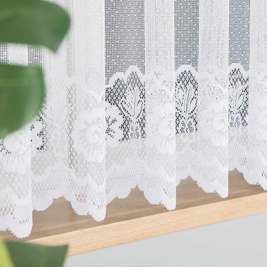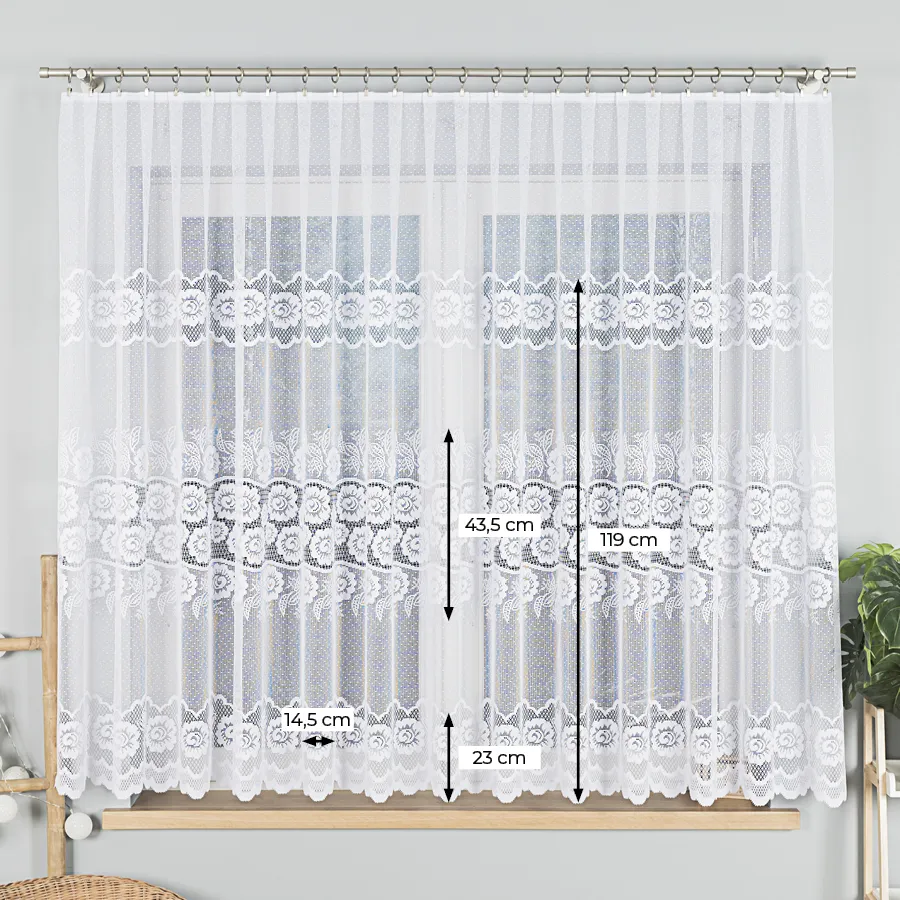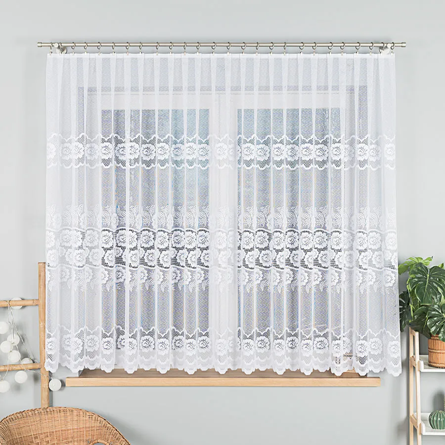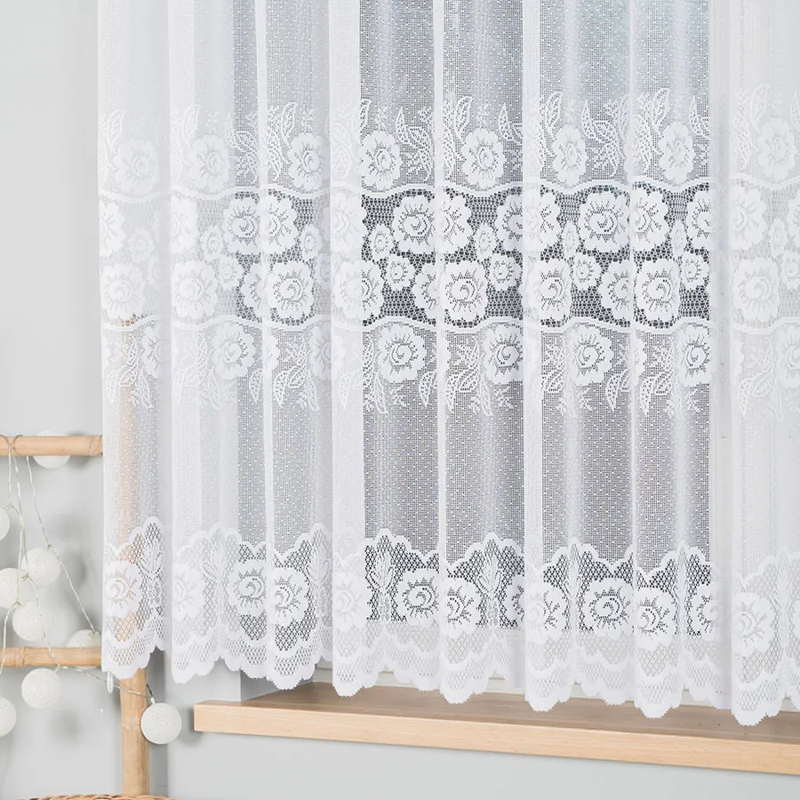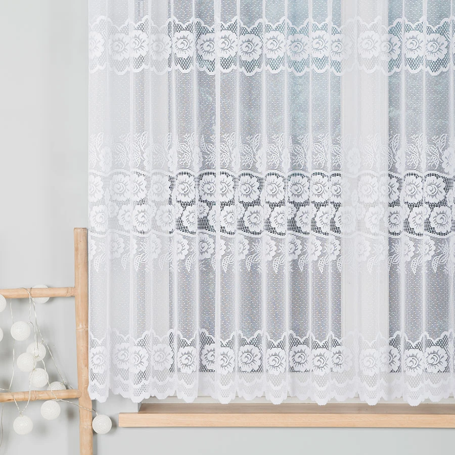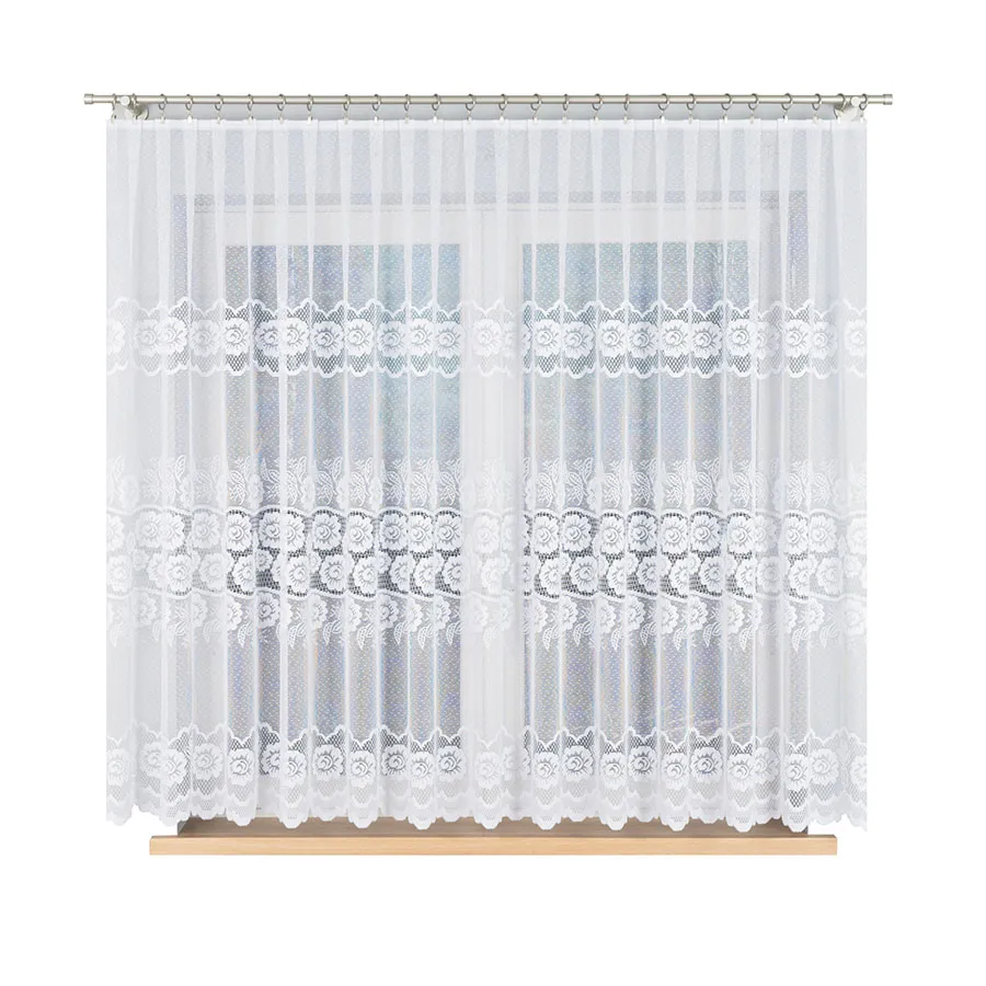 Firanka żakardowa dostępna w metrażu w kolorze białym. Kilka wysokości o wyboru, szerokość dowolna, dzięki czemu dopasujesz ją dokładnie do swojego okna.