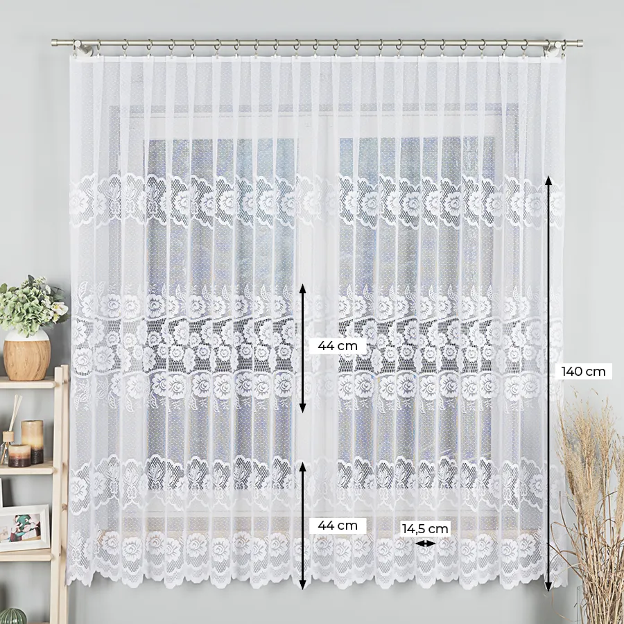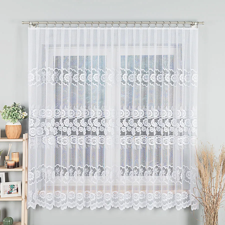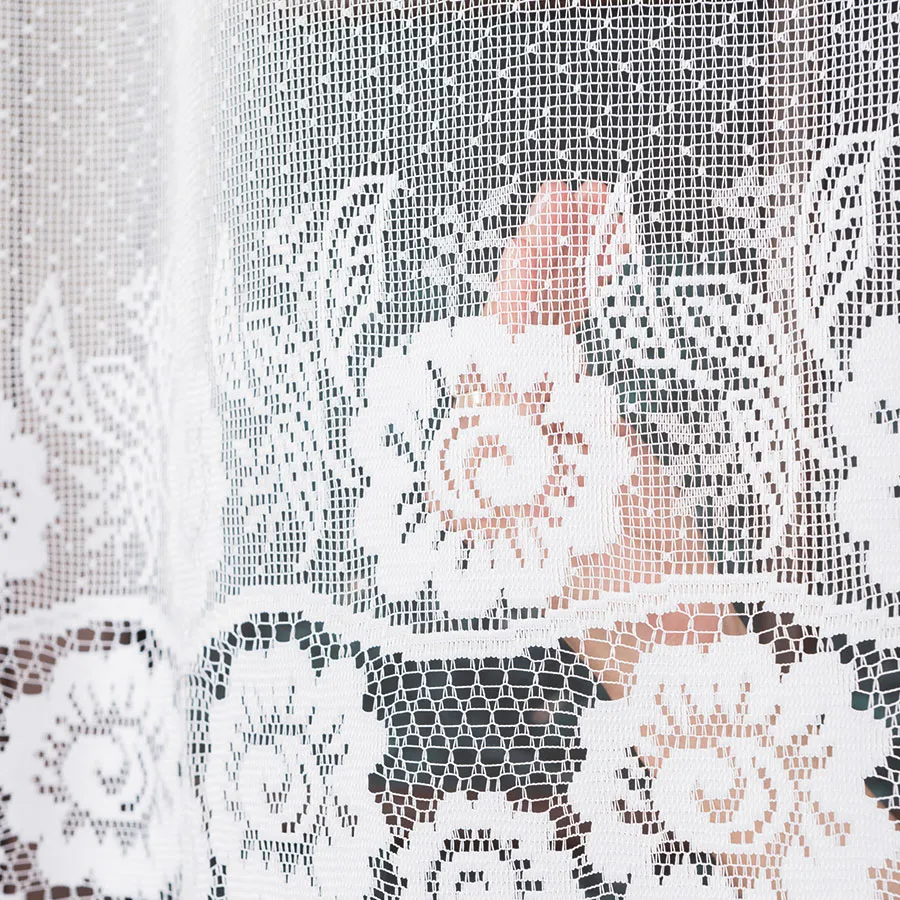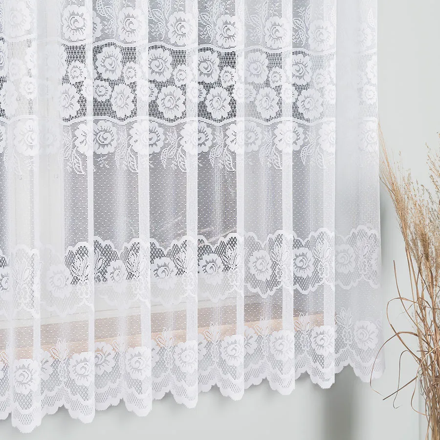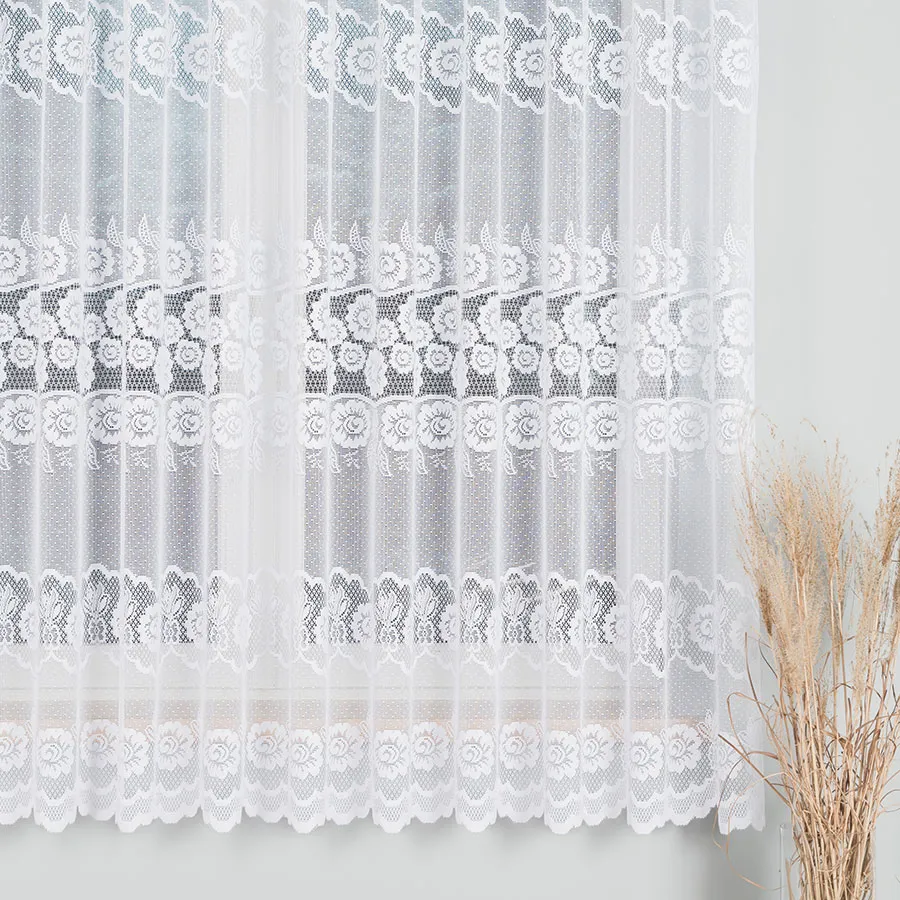 Firanka żakardowa dostępna w metrażu w kolorze białym. Kilka wysokości o wyboru, szerokość dowolna, dzięki czemu dopasujesz ją dokładnie do swojego okna. Najwyższa jakość przędzy żakardowej idealnie wkomponuje się w aranżację wnętrz nowoczesnych jak i tych urządzonych w klasycznym stylu. Firanka pięknie się układa, nie wymaga prasowania i można ją prać w pralce w niskiej temperaturze. Cechuje ją dobra przepuszczalność powietrza i promieni słonecznych.