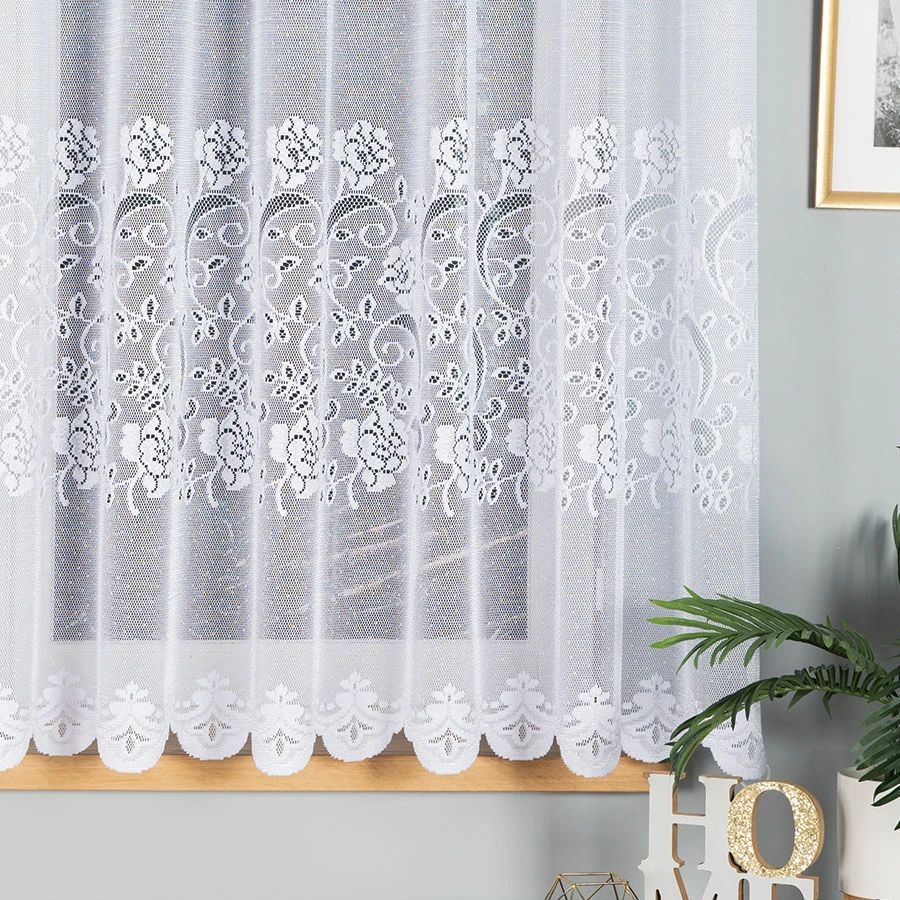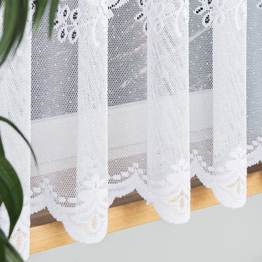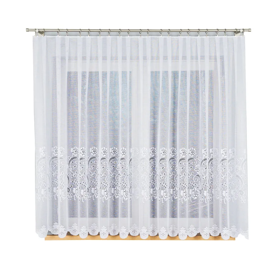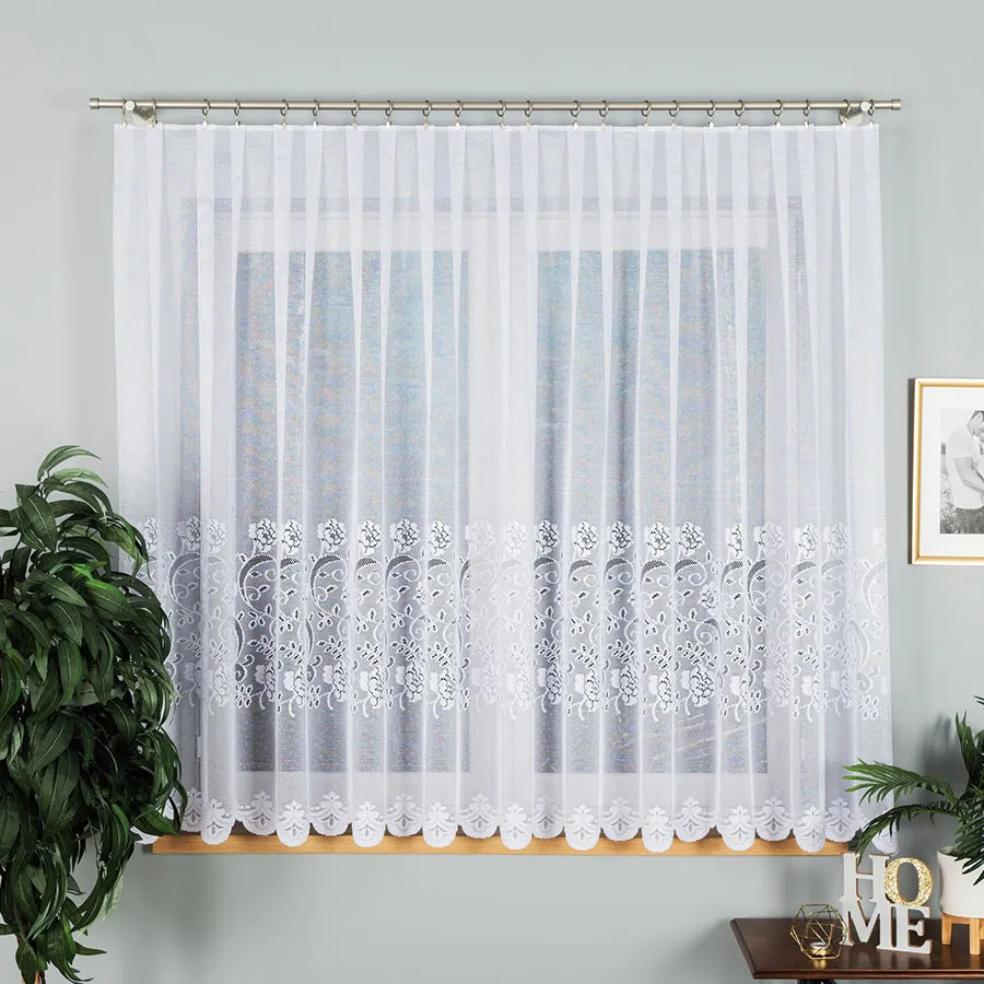Firanka żakardowa dostępna w metrażu w kolorze białym. Wiele wysokości o wyboru, szerokość dowolna, dzięki czemu dopasujesz ją dokładnie do swojego okna.