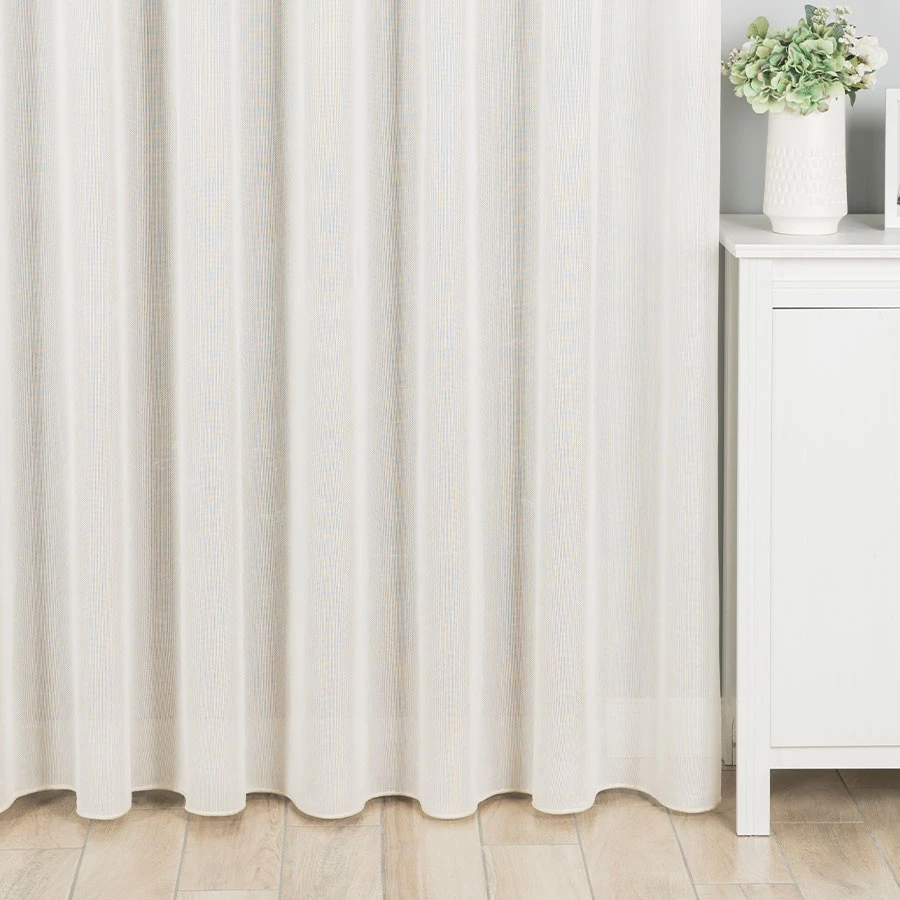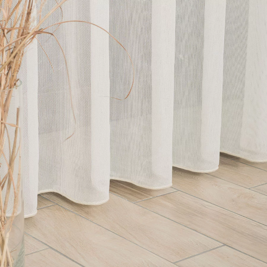 Firanka metrażowa, umiarkowanie przepuszczająca powietrze i promienie słoneczne. Pięknie się układa. Idealna propozycja na zwieńczenie procesów aranżacyjnych w pokojach dziennych i salonach. Zagęszczony splot delikatnego, siateczkowego podkładu dostępny jest w czterech kolorach. Tak prosty i minimalistyczny wzór, który doda subtelności i przytulności wnętrzom.
