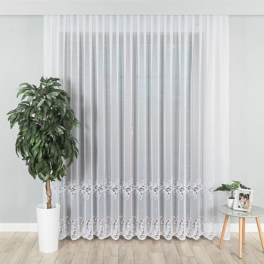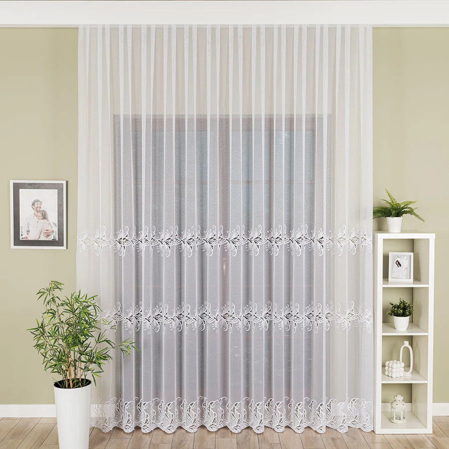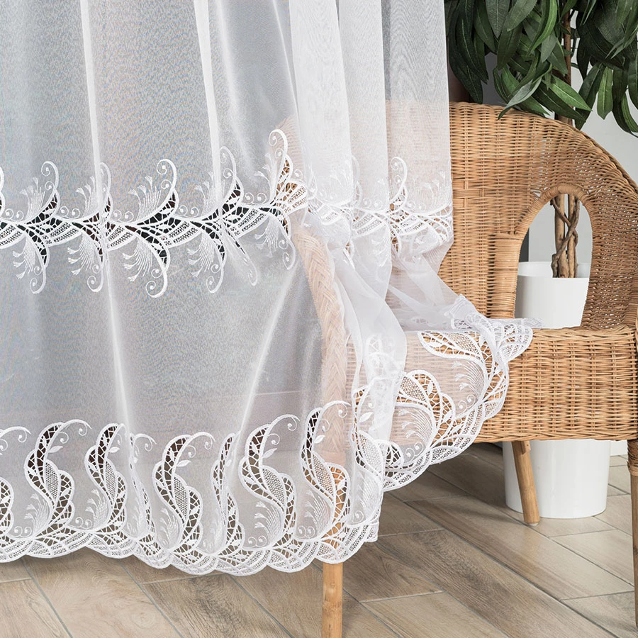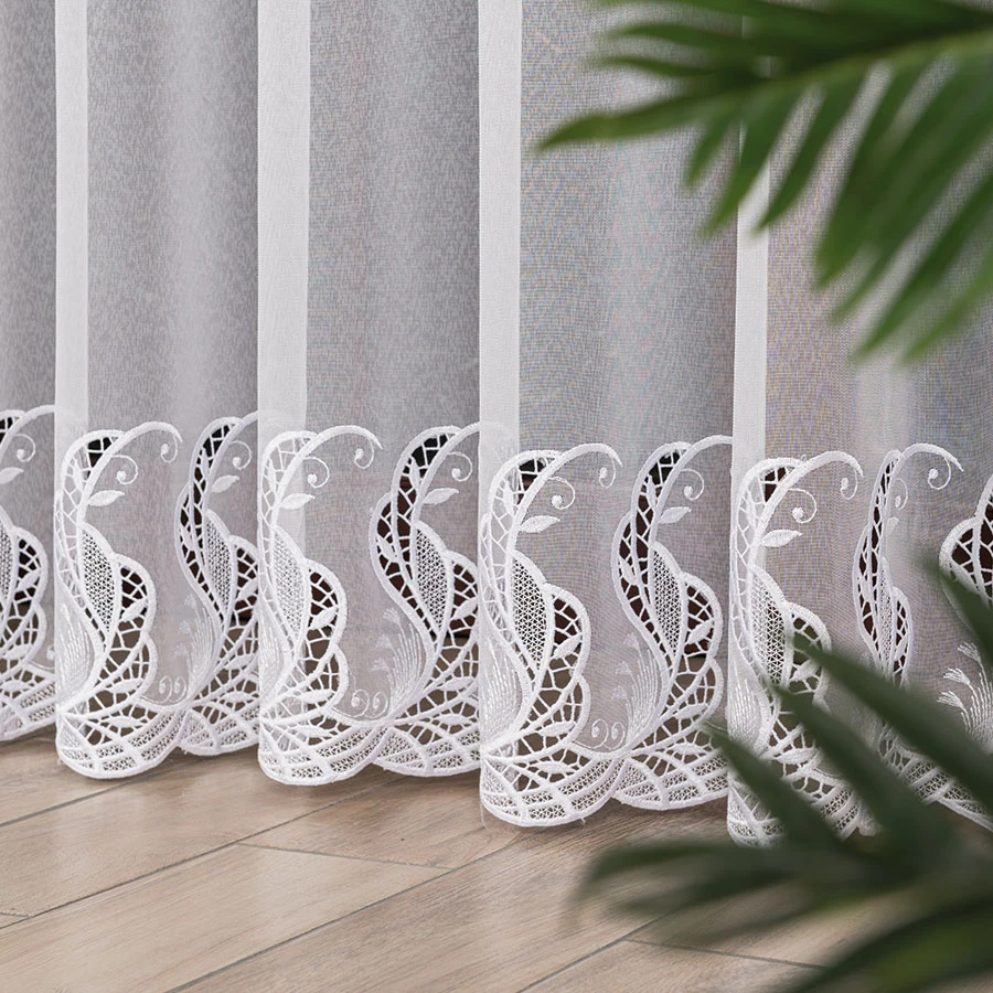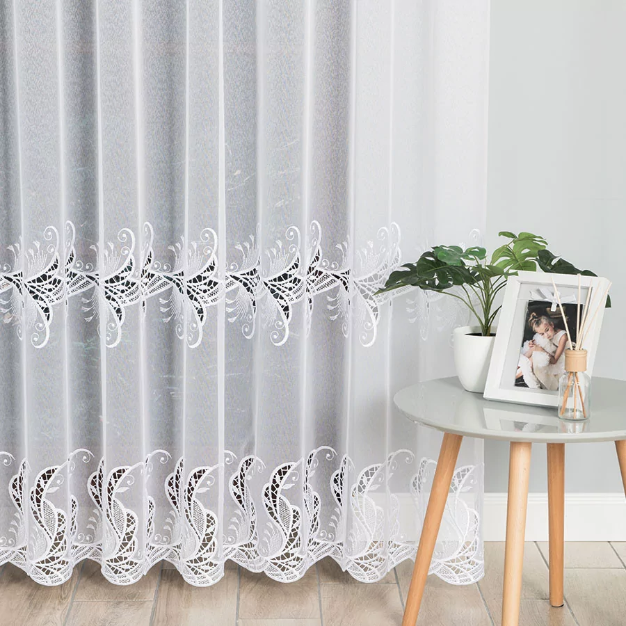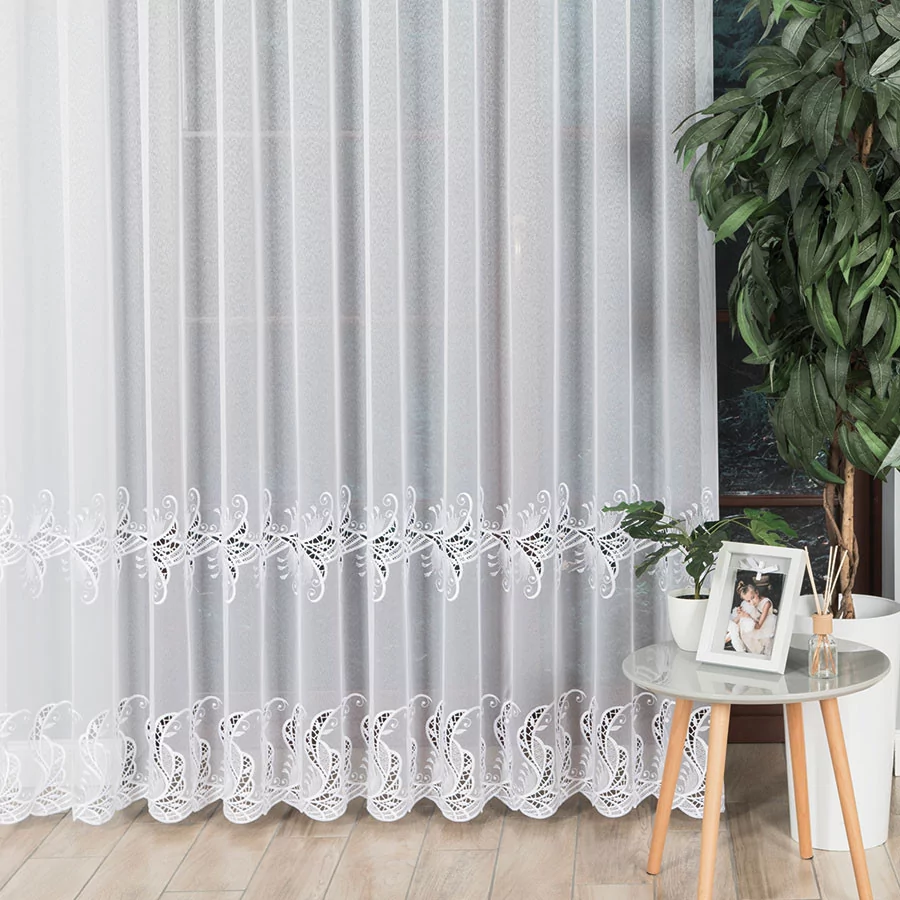 Pragniesz dodać odrobinę magii do swojego wnętrza? Poznaj naszą wyjątkową firankę haftowaną z aplikacją gipiurową 162035. Ten misterny ażurowy wzór, wykonany z dwóch szlaków aplikacji gipiurowej, sprawi, że Twoje okno stanie się prawdziwym dziełem sztuki. Nie tylko jest lekka i przewiewna, ale także doskonale przepuszcza światło i powietrze, tworząc przyjemną atmosferę w pomieszczeniu. Co więcej, nie musisz się martwić o gniecenie się firanki - jej lekka materiałowa konstrukcja sprawia, że pięknie układa się już po rozpakowaniu. A jeśli potrzebujesz dostosować jej wymiary do swojego okna, nasza profesjonalna szwalnia z przyjemnością uszyje ją specjalnie dla Ciebie. Spraw sobie ten niezwykły dodatek do wnętrza już dziś!