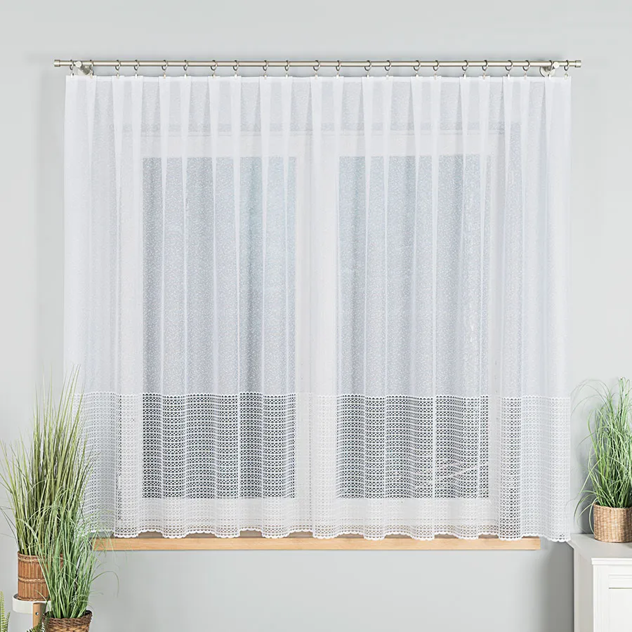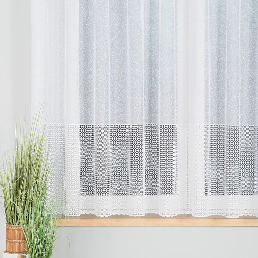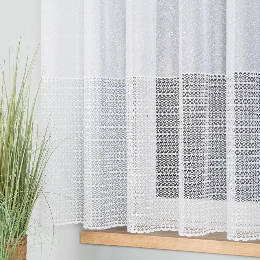 Daj swojemu wnętrzu wyjątkowy urok dzięki naszej żakardowej firance z klasycznym wzorem na samym dole. Ta ażurowa siatka o stylu retro jest nie tylko piękna, ale również praktyczna - świetnie się układa i nie wymaga żadnego prasowania. Co więcej, doskonale przepuszcza światło i powietrze, tworząc przyjemną atmosferę w pomieszczeniu. Jeśli potrzebujesz firanki na wymiar, możemy ją dla Ciebie uszyć w naszej profesjonalnej szwalni. Dodaj nutkę elegancji do swojego domu dzięki naszemu metrażowi firanek żakardowych!