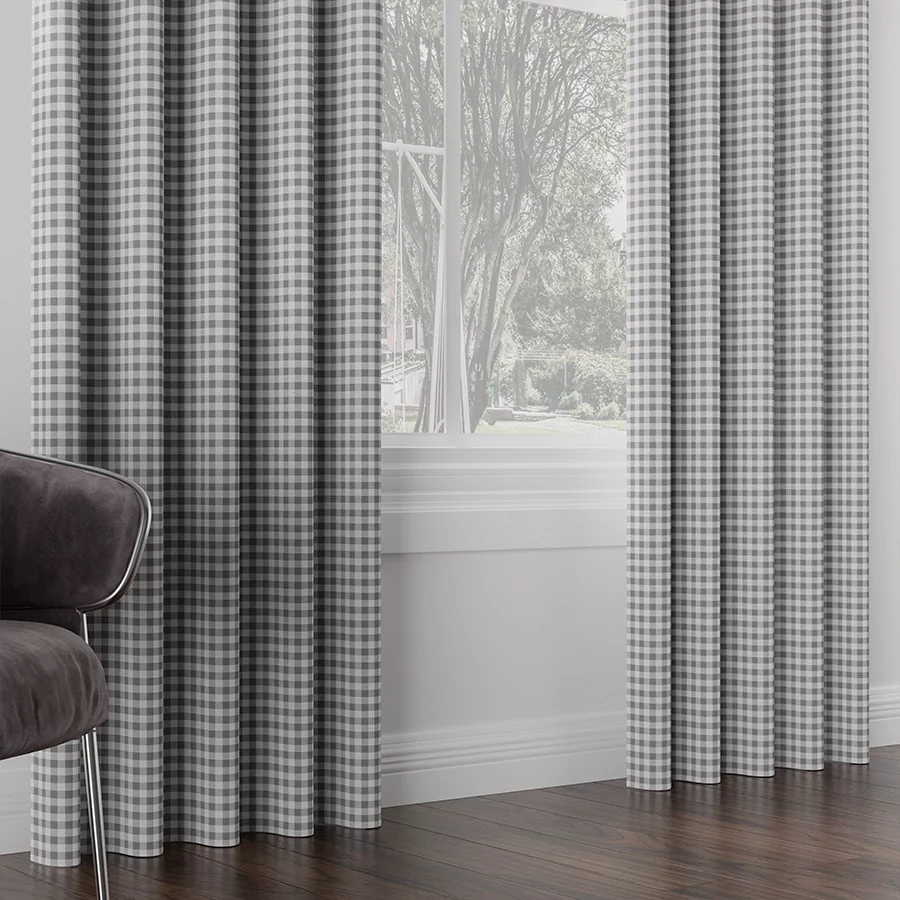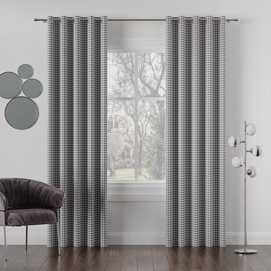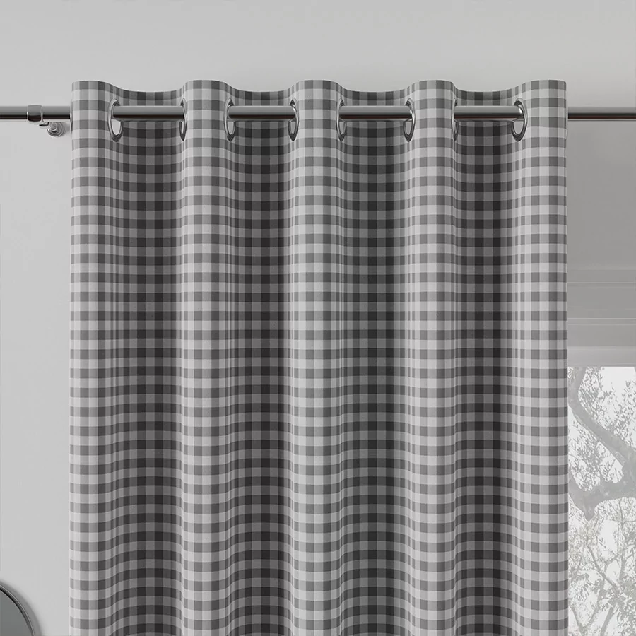 MATEO to wodoodporna tkanina dekoracyjna z nieustająco modnym wzorem w kratę. Wspaniała tkanina dekoracyjna, idealna na zasłony i inne elementy wystroju domu.