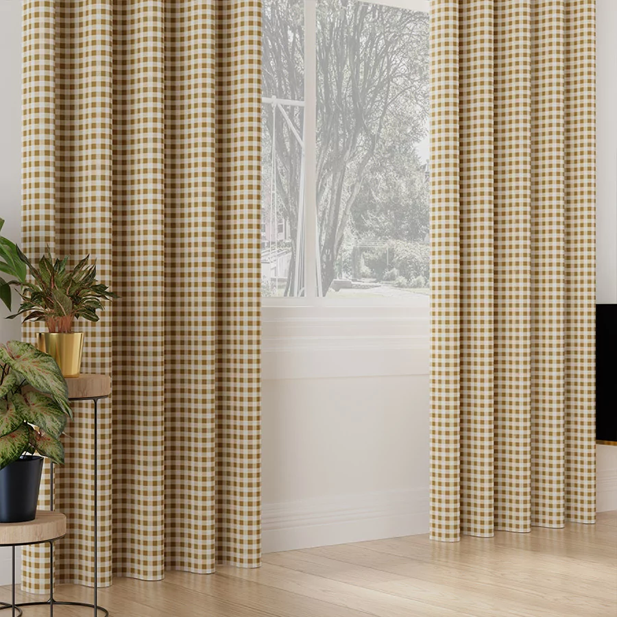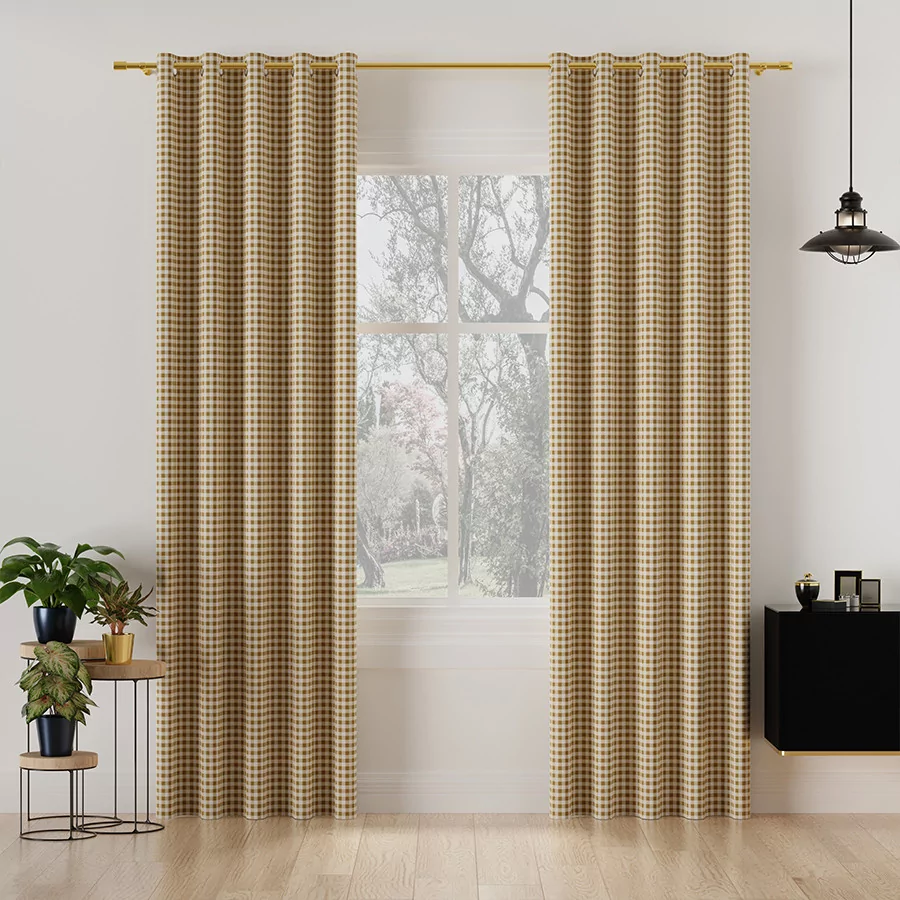 MATEO to wodoodporna tkanina dekoracyjna z nieustająco modnym wzorem w kratę. Wspaniała tkanina dekoracyjna, idealna na zasłony i inne elementy wystroju domu.