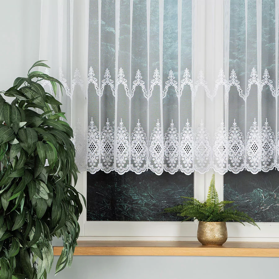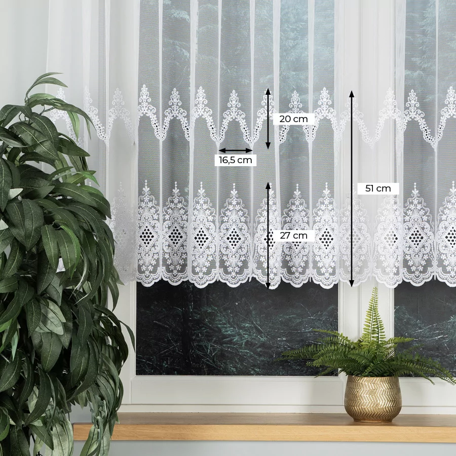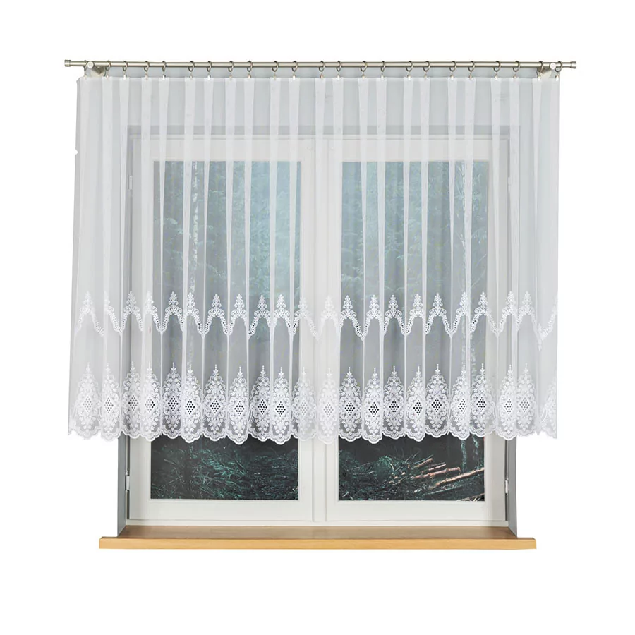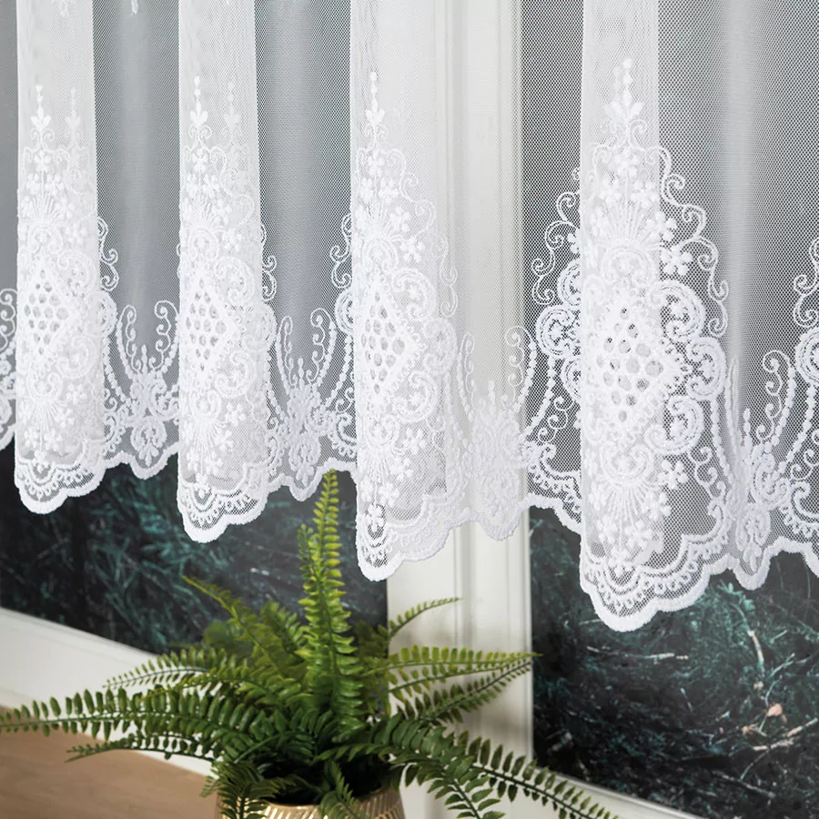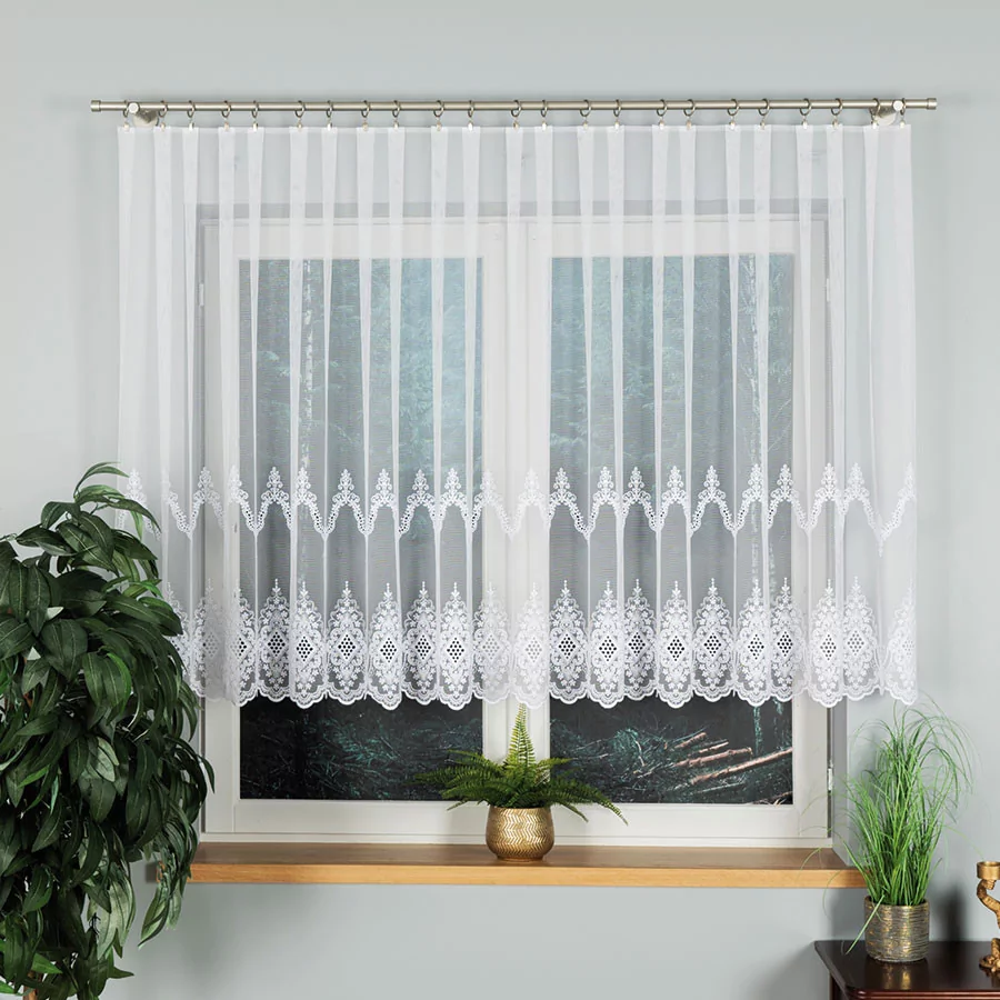 Stwórz magiczną atmosferę w swoim domu dzięki naszej haftowanej firance na tiulu. Przez całość wzoru światło delikatnie przenika do Twojego wnętrza, tworząc niepowtarzalny efekt. Lekka i przewiewna tkanina idealnie się układa, dodając elegancji i wyrafinowania każdemu pomieszczeniu. Niezależnie od stylu Twojego wnętrza, nasza firanka z pewnością zrobi wrażenie. A jeśli potrzebujesz dopasowanej do Twoich wymiarów firanki, nasza profesjonalna szwalnia jest gotowa spełnić Twoje marzenia. Odkryj piękno tkwiące w najdrobniejszych detalach!
