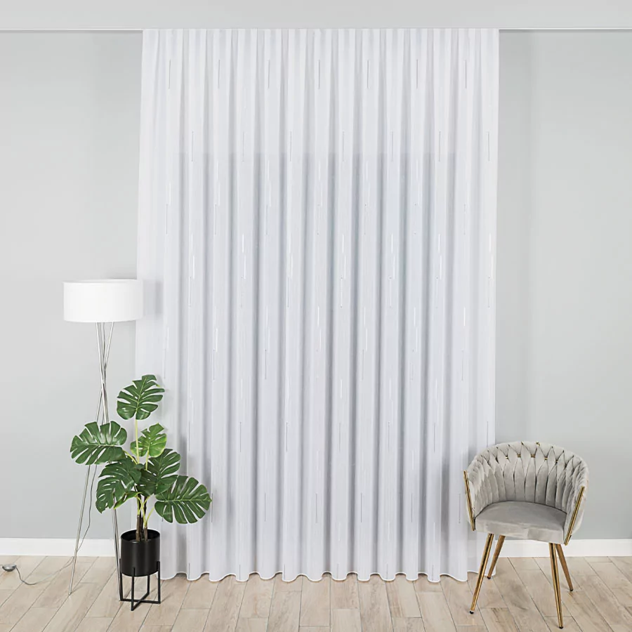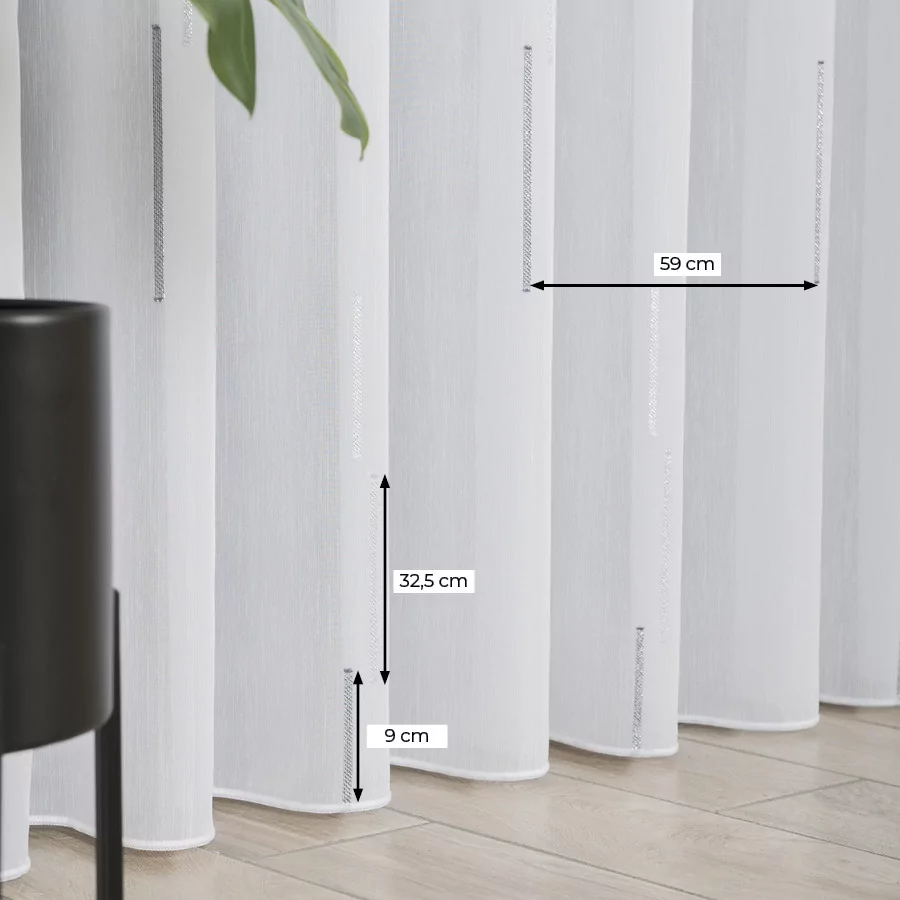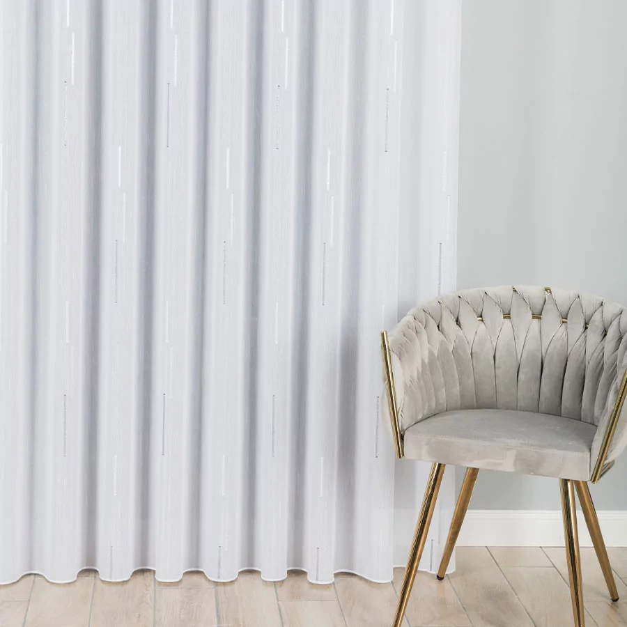 Firanka metrażowa wykonana na delikatnym podkładzie fantazyjnym z ołowianką, zdobiona pionowymi pasami. Dostępna w dwóch wersjach kolorystycznych. Lekki i pięknie układający się materiał idealnie wpasuje się zarówno w nowoczesne, jak i klasyczne wnętrze. Dzianina fantazyjna, jest tkaniną delikatną oraz zwiewną - idealną do uzupełnienia wystroju okien. Doskonale się układa i pozwala stworzyć harmonijne wnętrze.