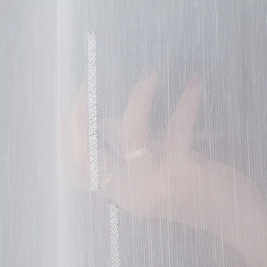 Firanka metrażowa wykonana na delikatnym podkładzie fantazyjnym z ołowianką, zdobiona pionowymi pasami. Dostępna w dwóch wersjach kolorystycznych. Lekki i pięknie układający się materiał idealnie wpasuje się zarówno w nowoczesne, jak i klasyczne wnętrze. Dzianina fantazyjna, jest tkaniną delikatną oraz zwiewną - idealną do uzupełnienia wystroju okien. Doskonale się układa i pozwala stworzyć harmonijne wnętrze.