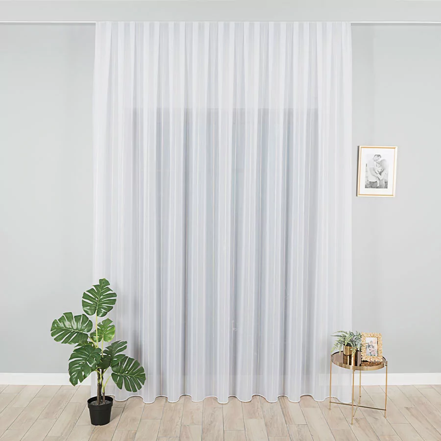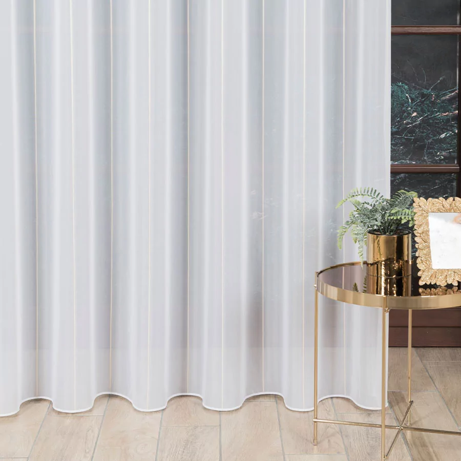 Firanka metrażowa wykonana na delikatnym podkładzie fantazyjnym z ołowianką, zdobiona pionowymi pasami. Dostępna w czterech wersjach kolorystycznych. Lekki i pięknie układający się materiał idealnie wpasuje się zarówno w nowoczesne, jak i klasyczne wnętrze. Dzianina fantazyjna, jest tkaniną delikatną oraz zwiewną - idealną do uzupełnienia wystroju okien. Doskonale się układa i pozwala stworzyć harmonijne wnętrze.