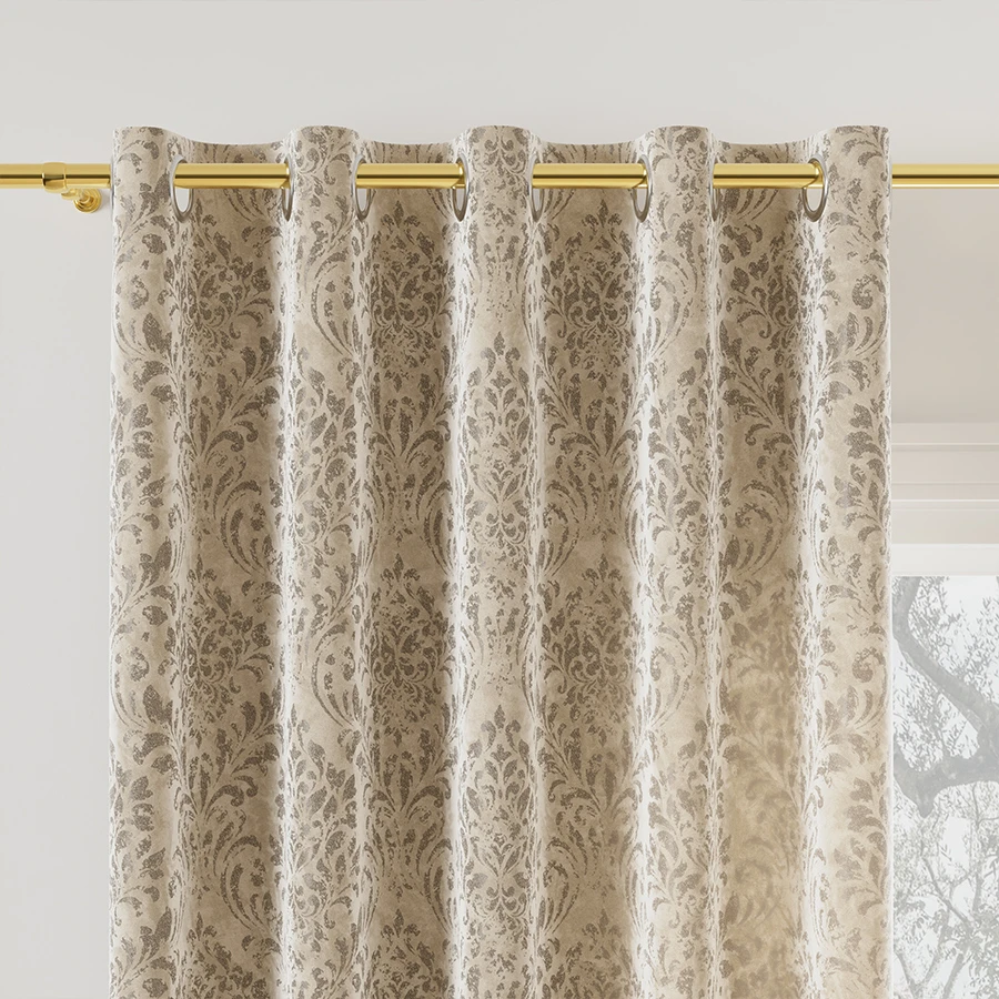Tkanina dekoracyjna w typie velvet z nadrukiem w postaci ciekawych ornamentów. Idealna propozycja na aranżację wnętrza jesienną porą. Miękka i miła w dotyku tkanina dekoracyjna MADELINE pasuje do wnętrz nowoczesnych, jak i tych urządzonych w klasycznym stylu.