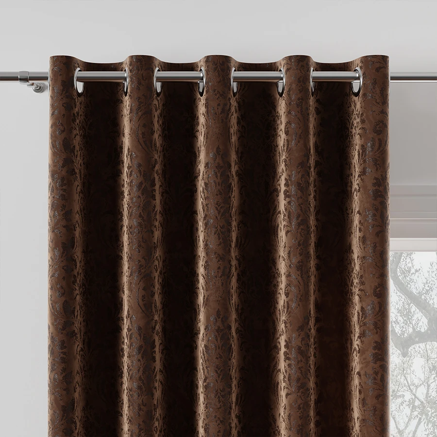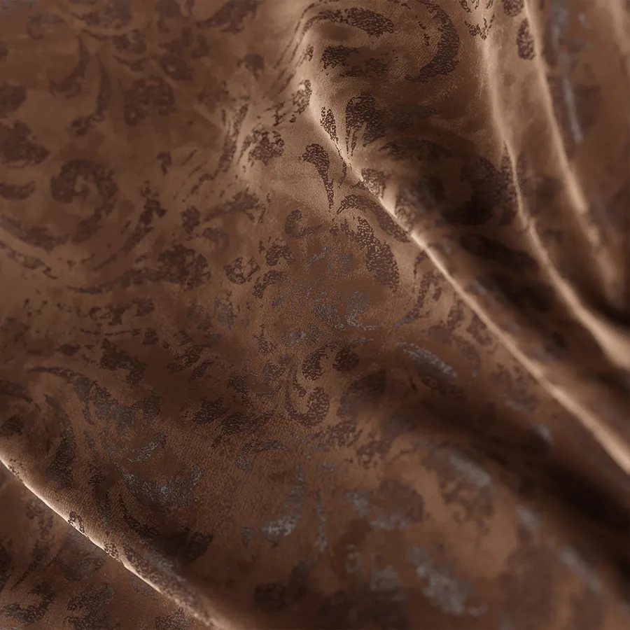 Tkanina dekoracyjna w typie velvet z nadrukiem w postaci ciekawych ornamentów. Idealna propozycja na aranżację wnętrza jesienną porą. Miękka i miła w dotyku tkanina dekoracyjna MADELINE pasuje do wnętrz nowoczesnych, jak i tych urządzonych w klasycznym stylu.