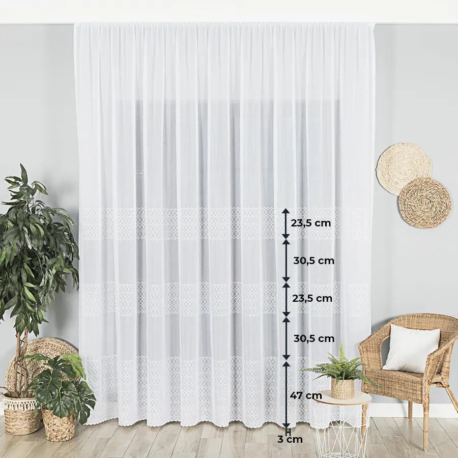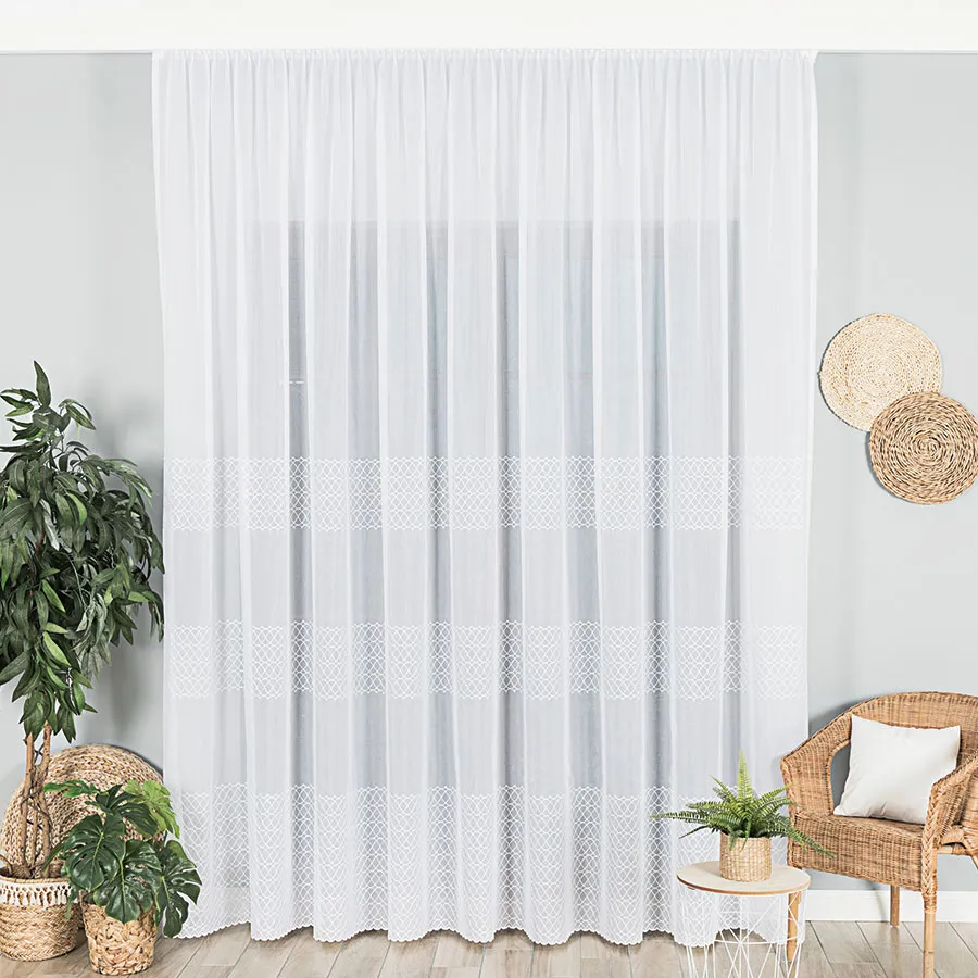 Podsumowując, firanka gotowa haftowana z taśmą SENTIERI to idealny wybór dla osób, które cenią sobie elegancję, jakość i wygodę. Zamów ją już dziś i ciesz się pięknym widokiem z okna!
