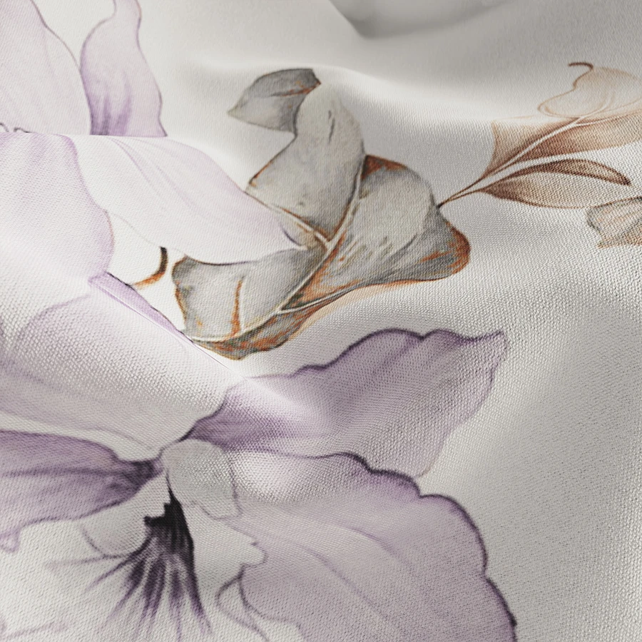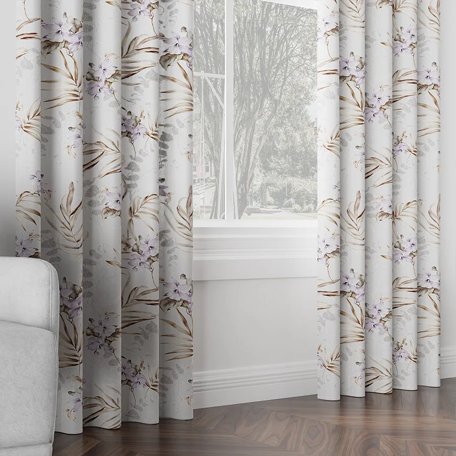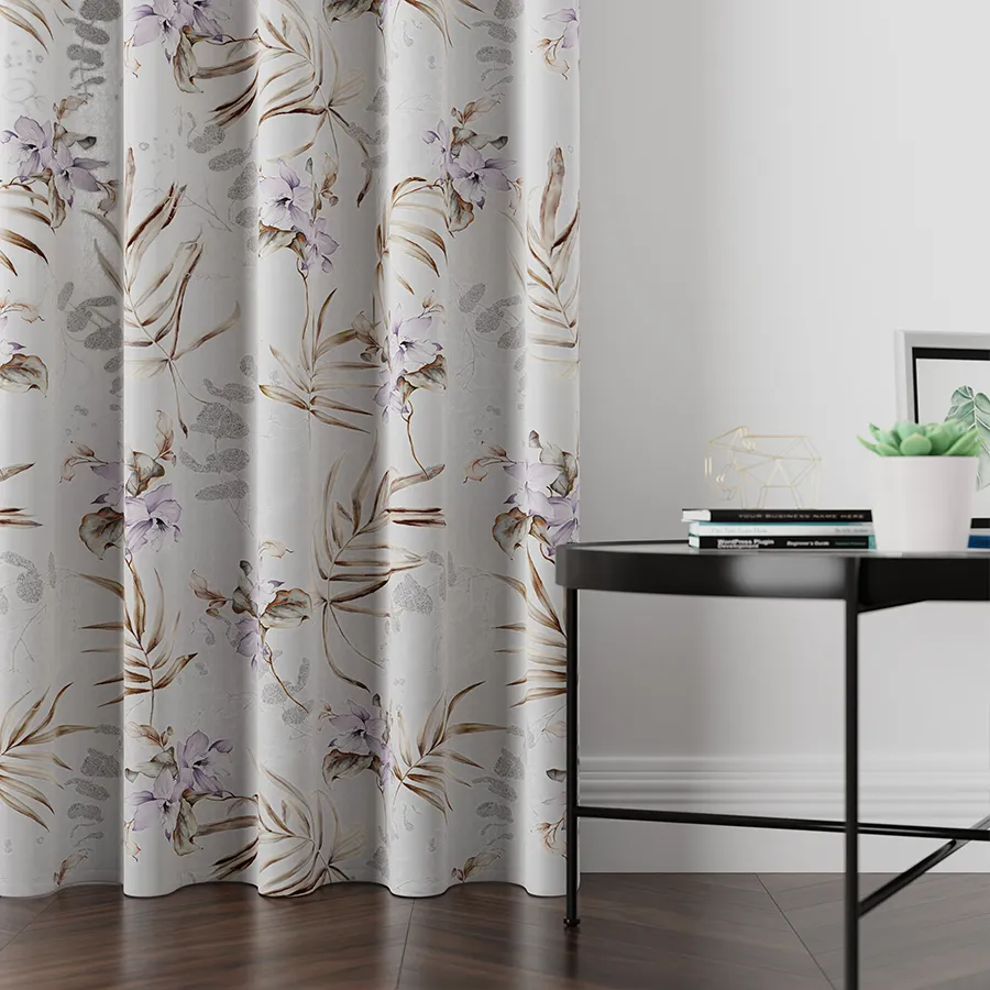 Gładki, półzaciemniający materiał z pięknym motywem roślinnym, dostępny w czterech pastelowych wersjach kolorystycznych. Wysoka gramatura i gęstość materiału gwarantują dość mocne zaciemnienie. Materiał jest miękki i "lejący", dzięki czemu wspaniale się układa, tworząc piękną dekorację. Materiał idealny na zasłony, poszewki lub narzuty.