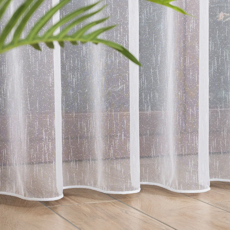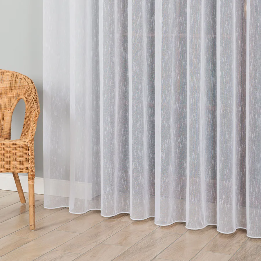 Poszukujesz firany, która doda Twojemu wnętrzu lekkości i nowoczesnego charakteru? Nasza firana wykonana z delikatnej siatki w uniwersalnym białym kolorze lub w złamanej bieli to doskonały wybór. Jej ażurowa struktura subtelnie przepuszcza światło, tworząc w pomieszczeniu jasną i przyjemną atmosferę. Dzięki ołowiance wszytej w dolnej części, firana zawsze będzie się elegancko prezentować, układając się w równomierne fale.