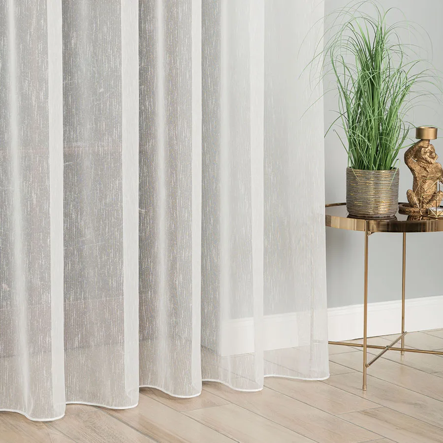 Odkryj lekką i stylową firanę gotową wykonaną z wysokiej jakości siatki w kolorze białym. Dolna krawędź została wykończona ołowianką, dzięki czemu firana pięknie się układa i zachowuje swój kształt. Idealna do nowoczesnych i klasycznych wnętrz, zapewniająca subtelny efekt dekoracyjny i delikatne przepuszczanie światła.
