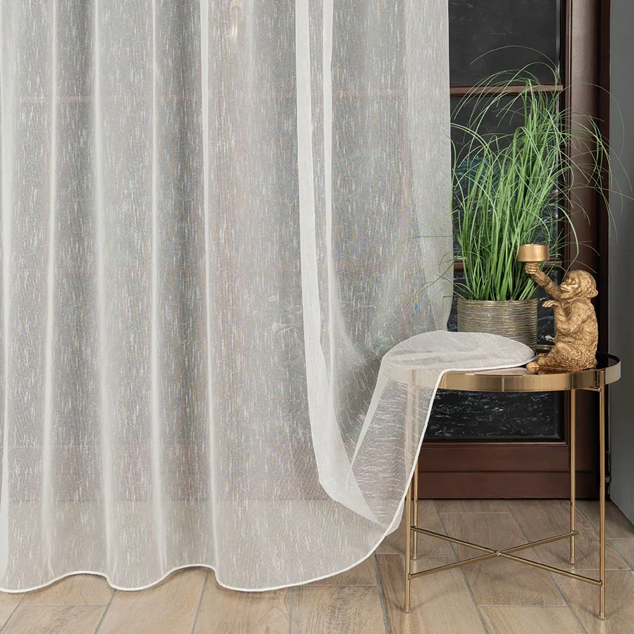 Poszukujesz firany, która doda Twojemu wnętrzu lekkości i nowoczesnego charakteru? Nasza firana wykonana z delikatnej siatki w uniwersalnym białym kolorze lub w złamanej bieli to doskonały wybór. Jej ażurowa struktura subtelnie przepuszcza światło, tworząc w pomieszczeniu jasną i przyjemną atmosferę. Dzięki ołowiance wszytej w dolnej części, firana zawsze będzie się elegancko prezentować, układając się w równomierne fale.