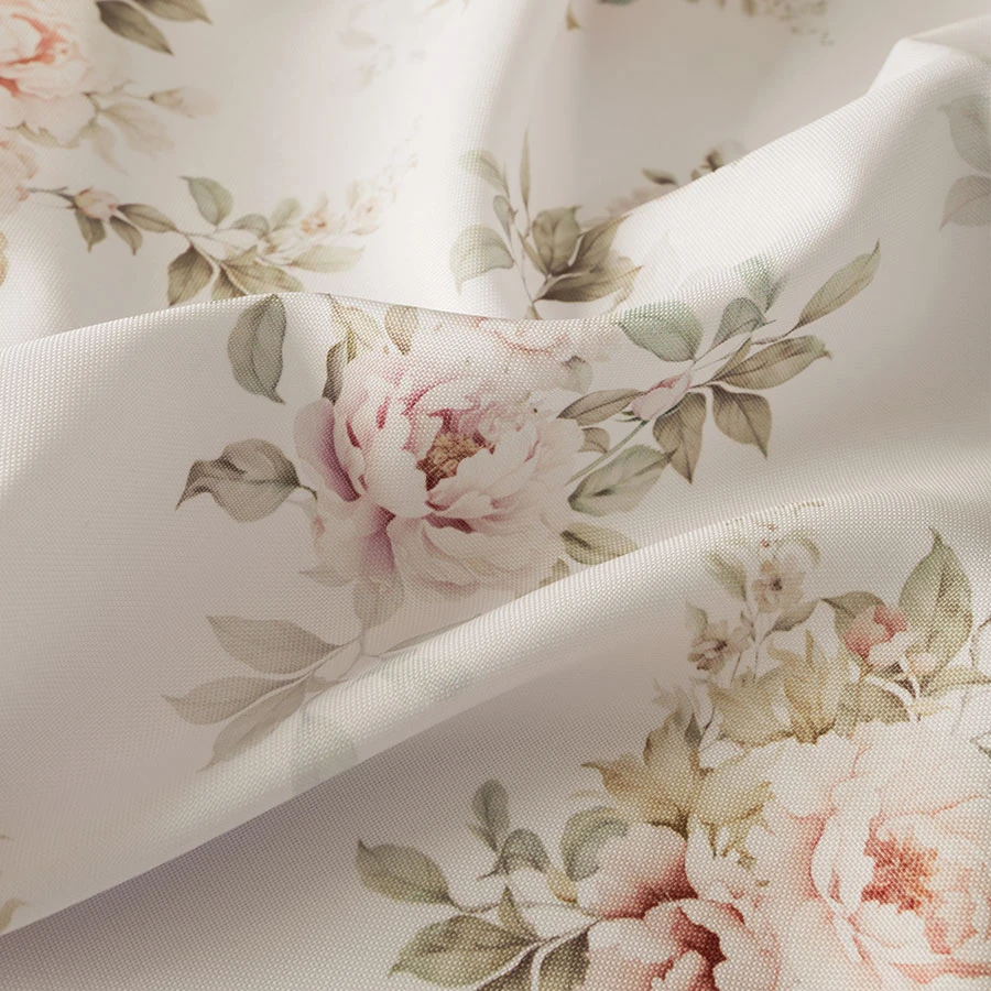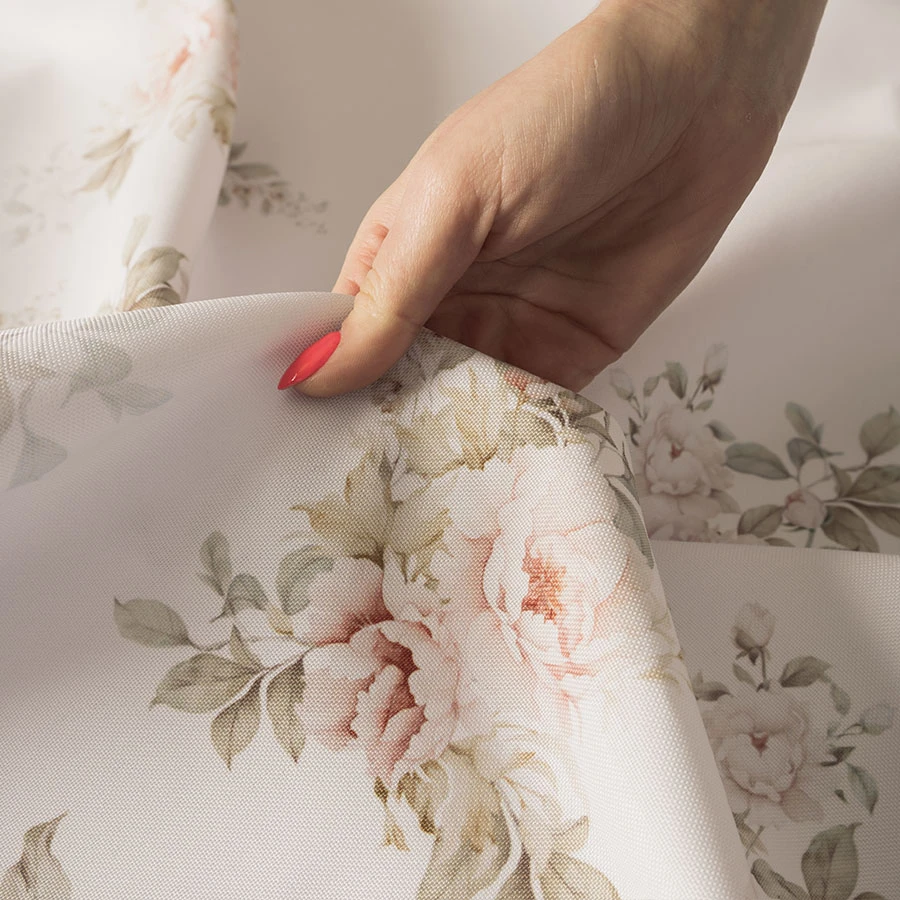 Dodaj romantyczny akcent do swojego stołu dzięki tej wyjątkowej wodoodpornej tkaninie z subtelnym kwiatowym nadrukiem. Jej gładka powierzchnia i lekko sztywny chwyt sprawiają, że idealnie sprawdzi się jako obrus, bieżnik lub ozdobna dekoracja stołu.