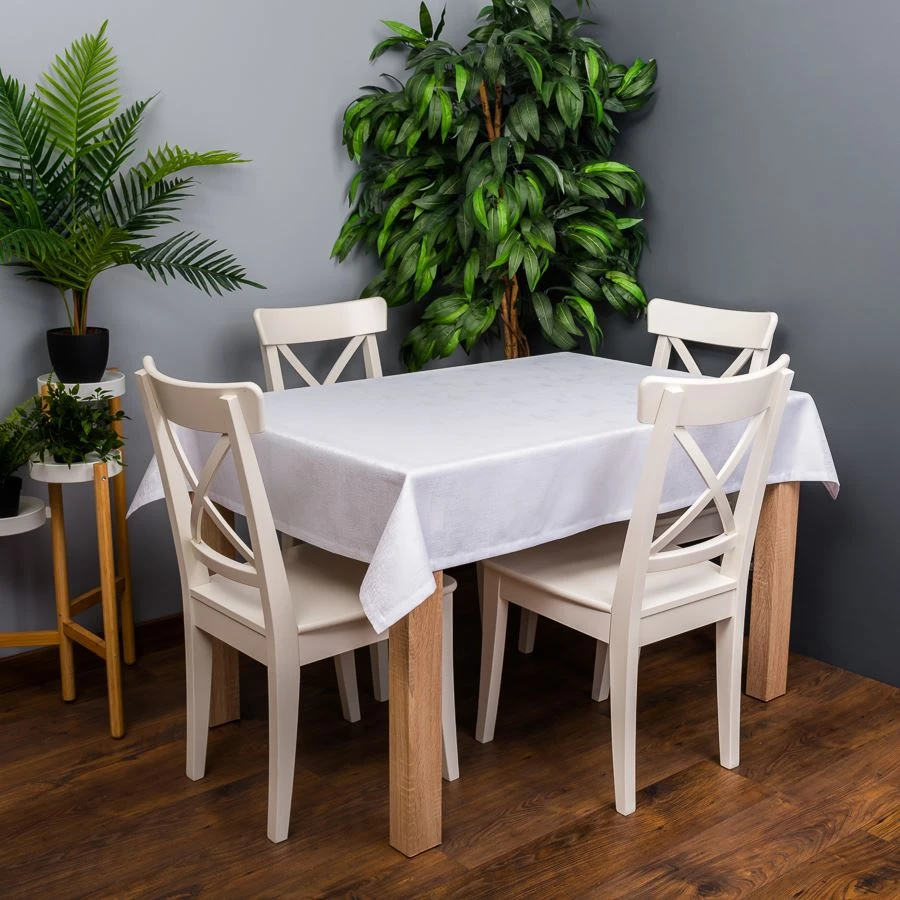 Obrus wodoodporny w kolorze białym to doskonały dodatek do każdego stołu, zarówno na co dzień, jak i na specjalne okazje. Dzięki swojej wodoodpornej powłoce, chroni przed wszelkimi zalaniem czy plamami, co sprawia, że jest niezwykle praktyczny i łatwy w utrzymaniu czystości. Obrus jest dostępny w wielu różnych rozmiarach, dzięki czemu można go dopasować do każdego stołu, zarówno małego jak i dużego. Boki obrusu zostały wykończone laserowo chmurką, co dodaje mu elegancji i sprawia, że prezentuje się bardzo stylowo. Delikatny wzór na materiale sprawia, że obrus pasuje do każdego wystroju wnętrza i można go łączyć z różnymi dodatkami stołowymi. Lekko nabłyszczany materiał dodaje mu elegancji i sprawia, że jest idealny do uroczystych okazji.