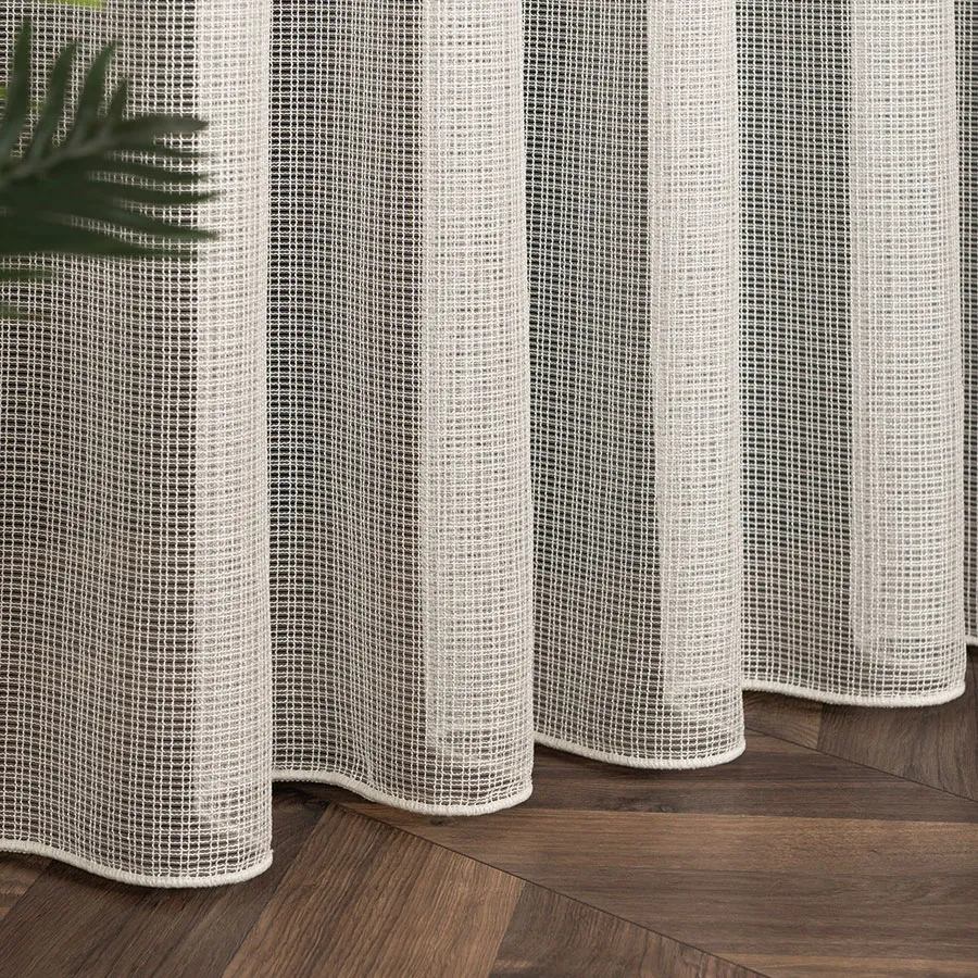 Firanka z fantazyjnej siatki z grubymi oczkami to elegancki i stylowy dodatek do każdego pomieszczenia. Wykonana z wysokiej jakości materiałów, charakteryzuje się delikatnością oraz lekkością, co sprawia, że doskonale komponuje się z różnymi rodzajami wystroju wnętrz. Dzięki swojej strukturze, firanka zapewnia prywatność, jednocześnie pozwalając na naturalne wpadanie światła do pomieszczenia. Wykończona u dołu ołowianką, ładnie się układa, co dodaje uroku i elegancji. Ta firanka jest dostępna w kilku różnych kolorach, co pozwala dopasować ją do konkretnego wystroju pomieszczenia. Bez względu na to, czy preferujesz beże, brązy czy szarości, z pewnością znajdziesz odpowiednią opcję dla siebie. Dzięki swojej uniwersalności, firanka ta doskonale sprawdzi się zarówno w salonie, sypialni, czy kuchni, jak i w biurze czy gabinecie.