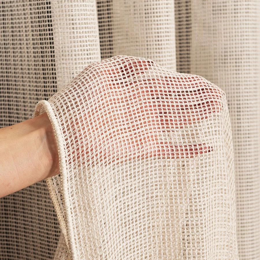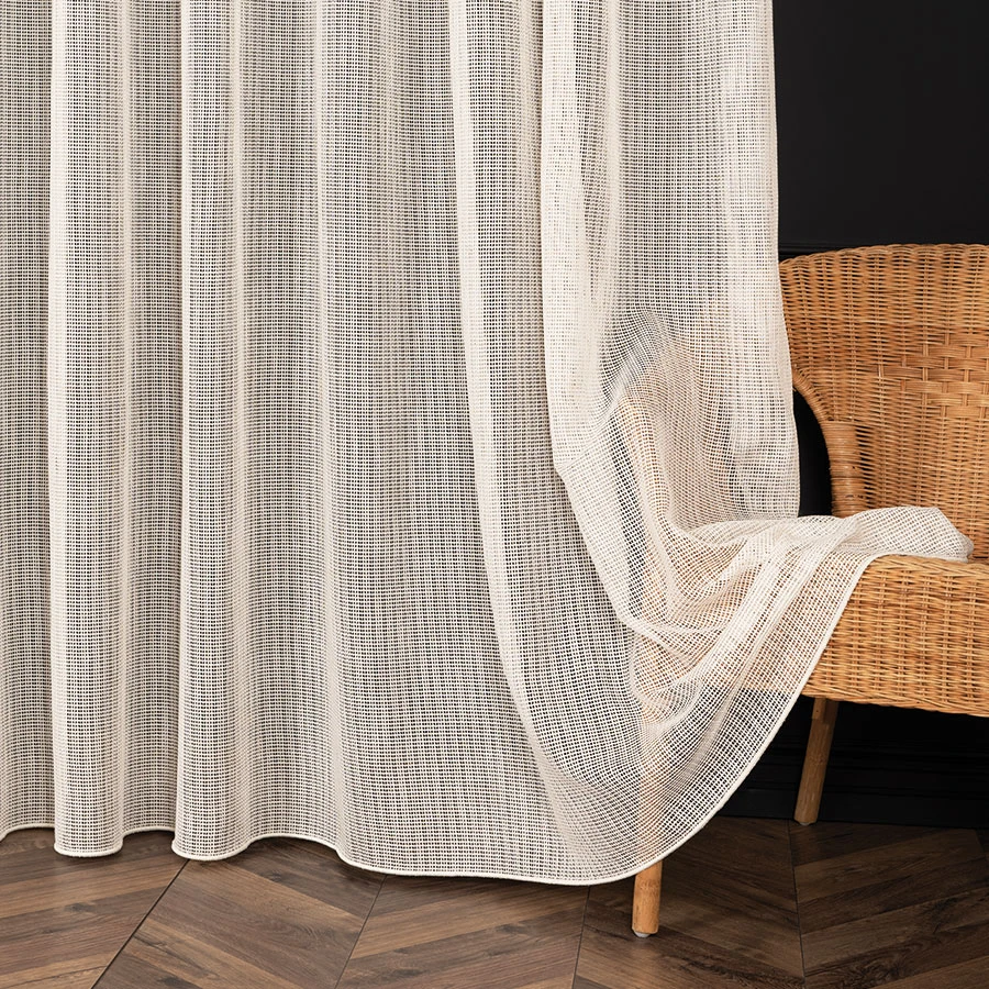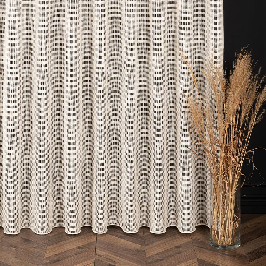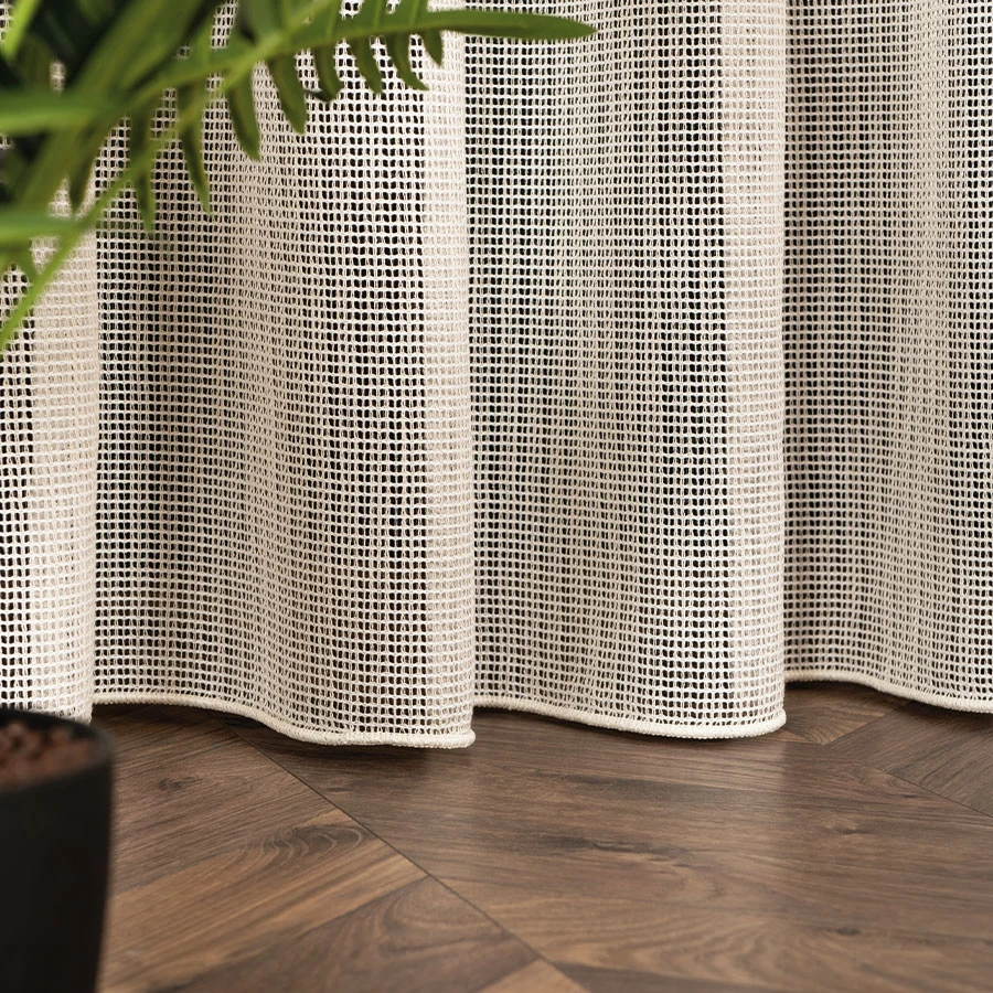 Ta firanka świetnie się układa, dzięki czemu od razu nadaje wnętrzu przytulności i elegancji. Grube oczka siatki sprawiają, że przepuszcza dużo światła, co sprawia, że pomieszczenie staje się bardziej jasne i przyjemne.