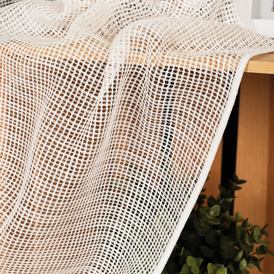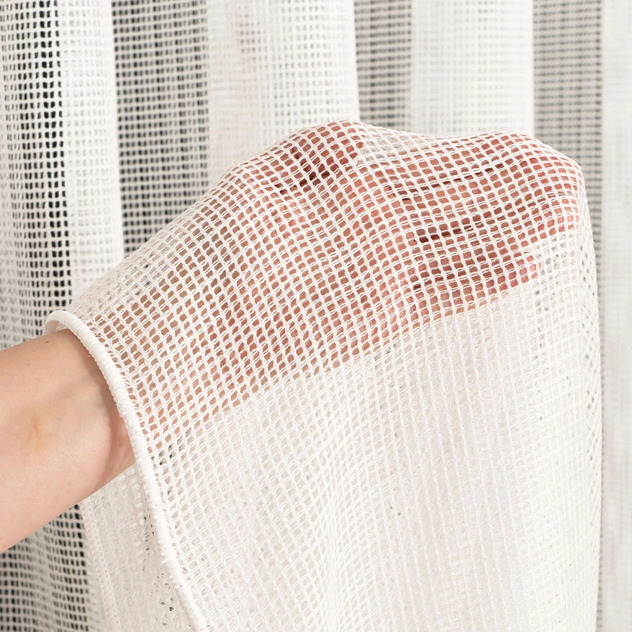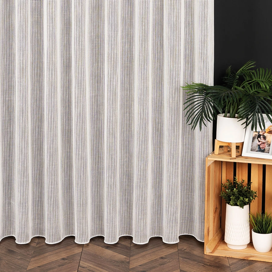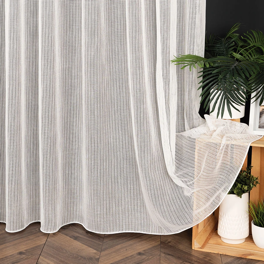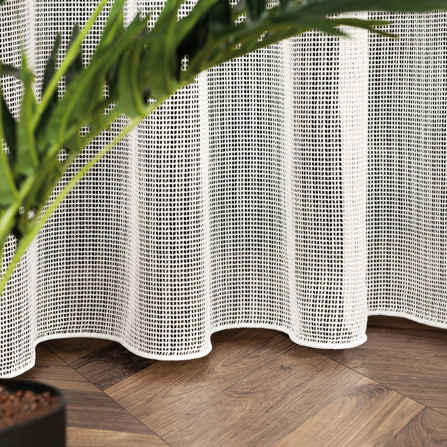Ta firanka świetnie się układa, dzięki czemu od razu nadaje wnętrzu przytulności i elegancji. Grube oczka siatki sprawiają, że przepuszcza dużo światła, co sprawia, że pomieszczenie staje się bardziej jasne i przyjemne.