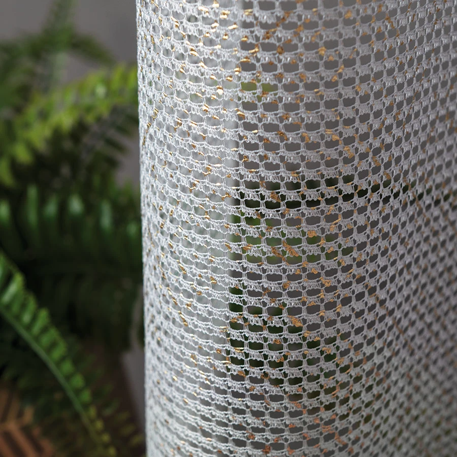 Szukasz oryginalnej dekoracji do swojego okna? Oto idealna propozycja dla Ciebie - firanka metrażowa z siatki zdobiona błyszczącą przędzą!