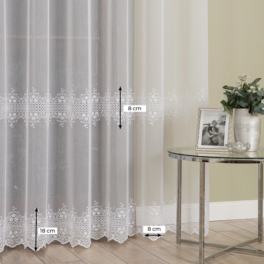 Zależy nam na zadowoleniu Klienta, dlatego wybieramy jedynie najwyższej jakości produkty polskich i zagranicznych producentów. Firanka haftowana ucinana lub szyta na indywidualne zamówienie! Nie jest to produkt gotowy, dlatego nie ma możliwości odstąpienia od umowy (zwrotu, ani wymiany), dlatego prosimy o przemyślane zakupy.