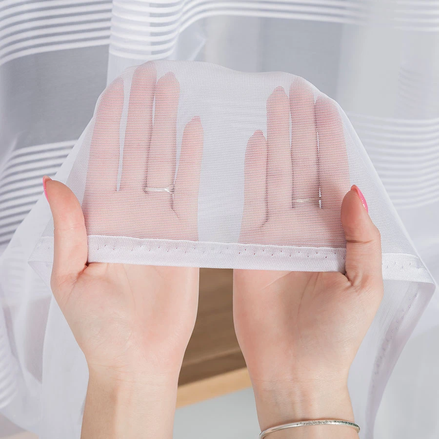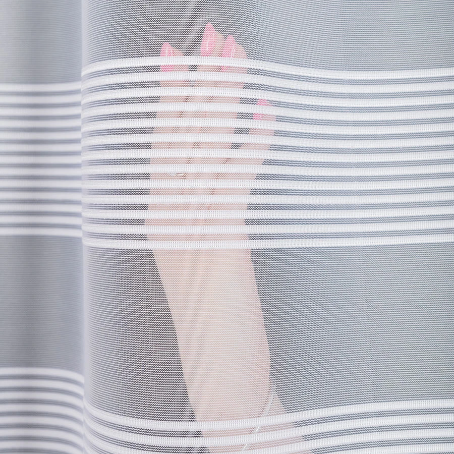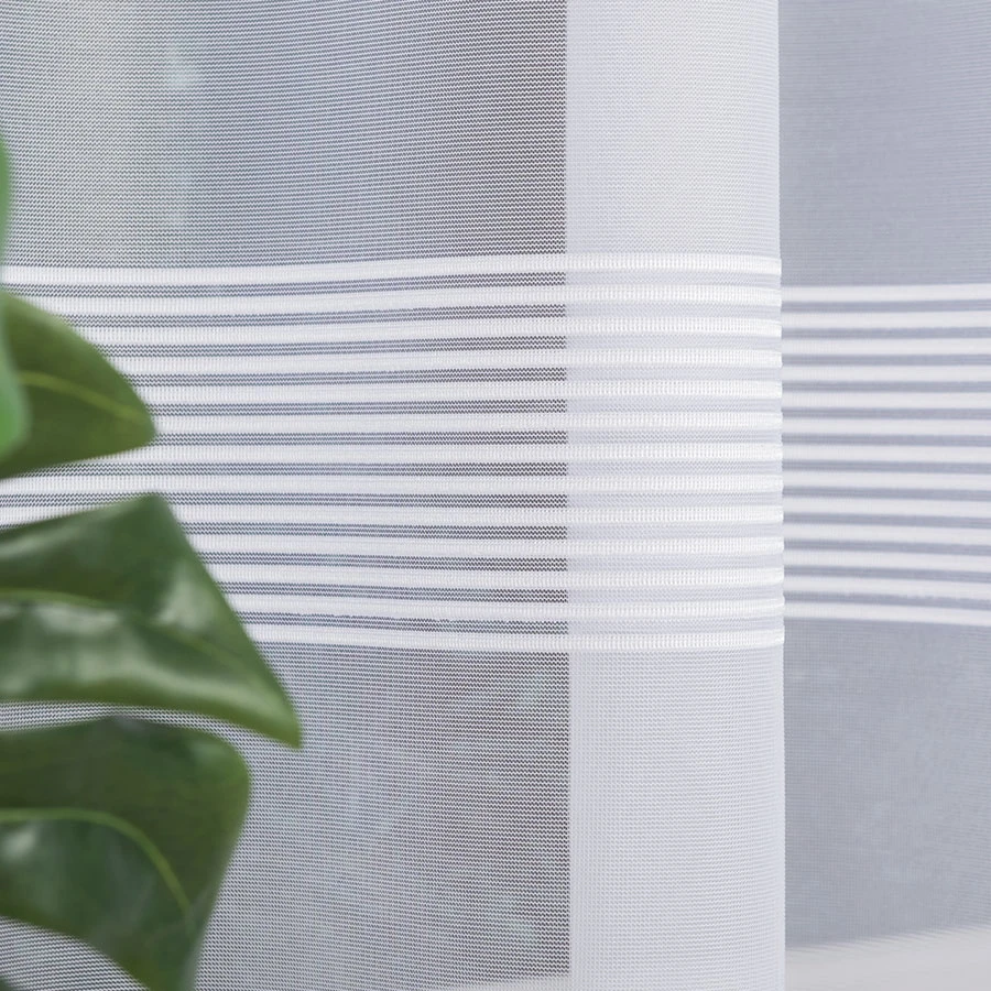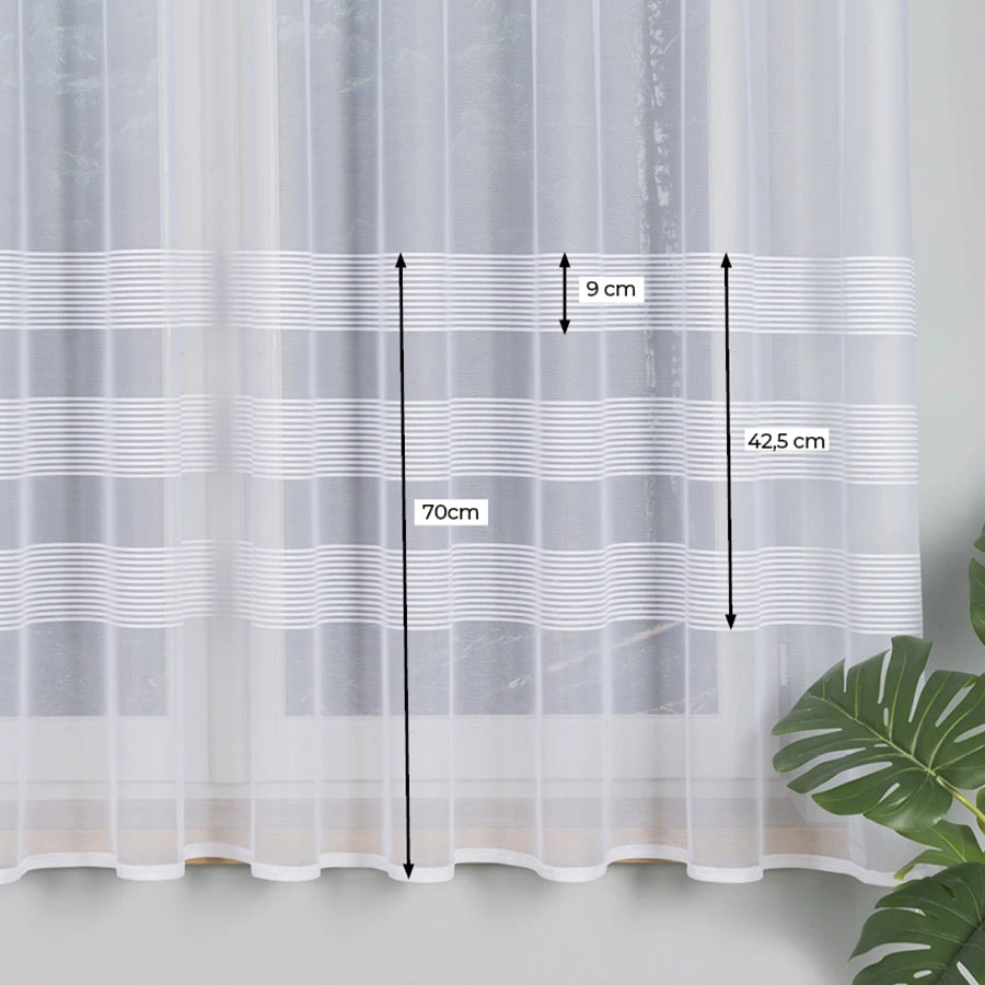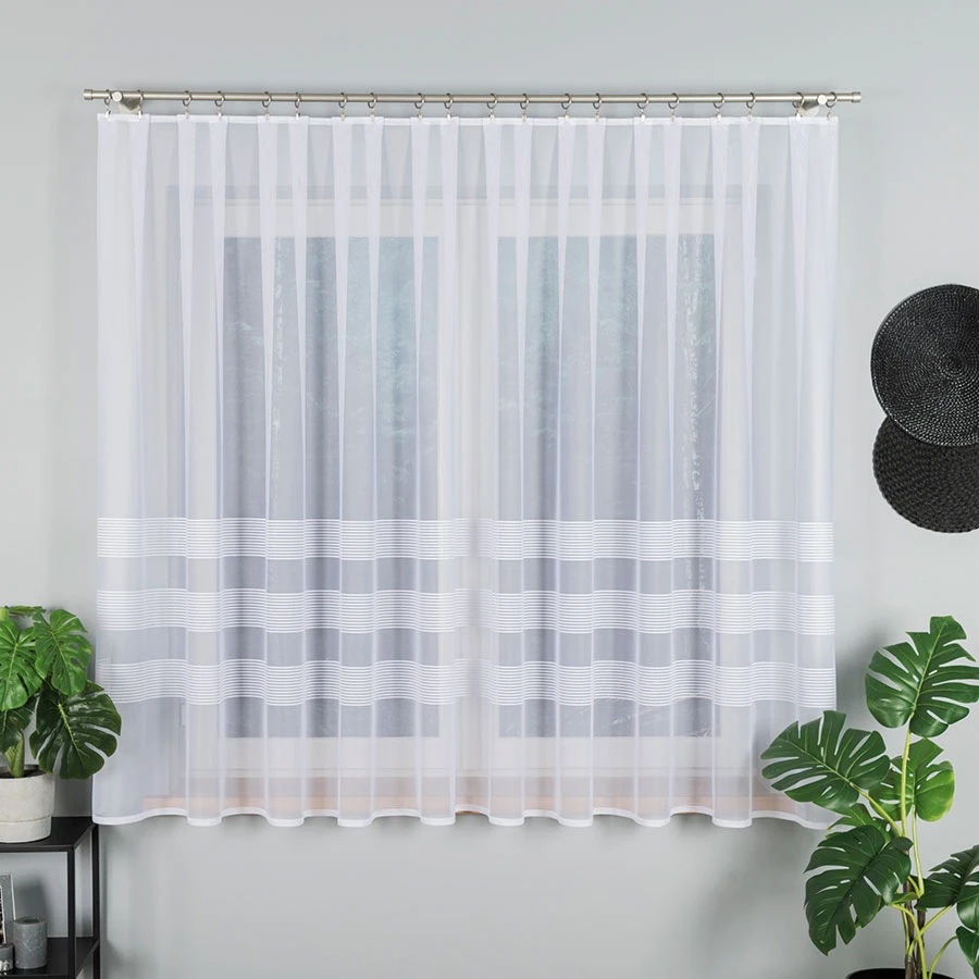 Wyjątkowy wzór firanki, składający się z subtelnych pasów na dole firanki, nadaje pomieszczeniu wyjątkowego charakteru i sprawia, że staje się ono bardziej przytulne i stylowe.
