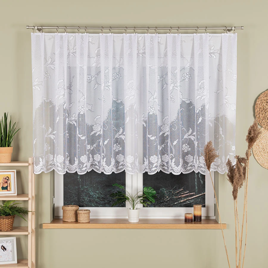 Oryginalny wzór firanki żakardowej sprawia, że będzie ona doskonałym uzupełnieniem każdego wnętrza. Od dołu firanka jest bardziej przezroczysta, co dodaje lekkości i delikatności, natomiast u góry jest mleczna, co zapewnia prywatność i ochronę przed słońcem.