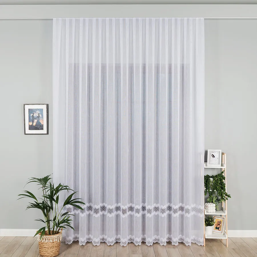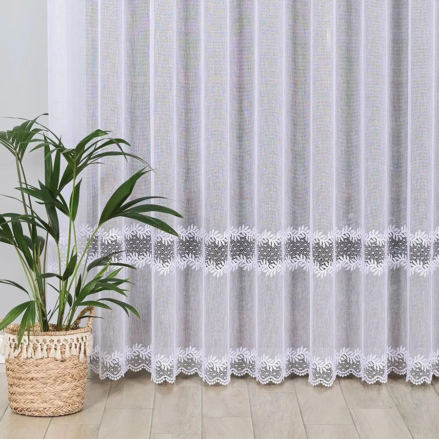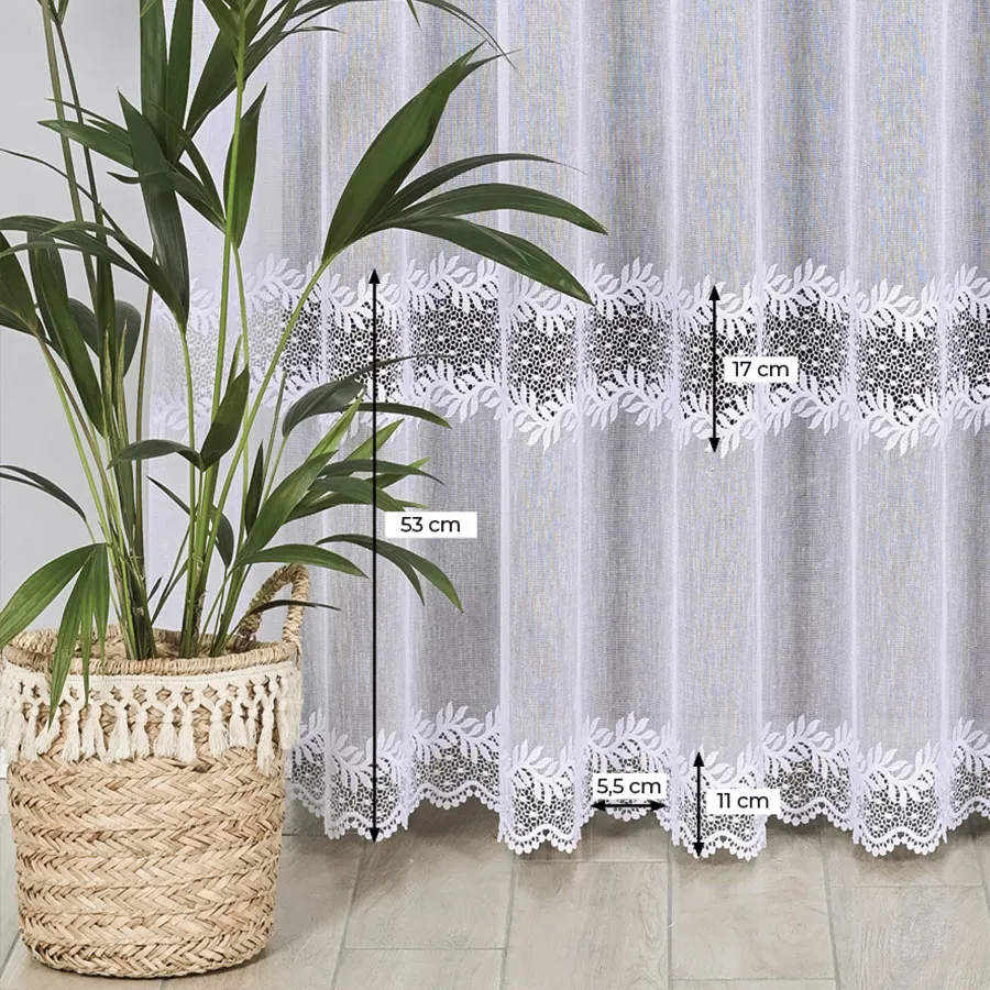 Zależy nam na zadowoleniu Klienta, dlatego wybieramy jedynie najwyższej jakości produkty polskich i zagranicznych producentów. Firanka z aplikacją gipiurową ucinana lub szyta na indywidualne zamówienie! Nie jest to produkt gotowy, dlatego nie ma możliwości odstąpienia od umowy (zwrotu, ani wymiany), dlatego prosimy o przemyślane zakupy.