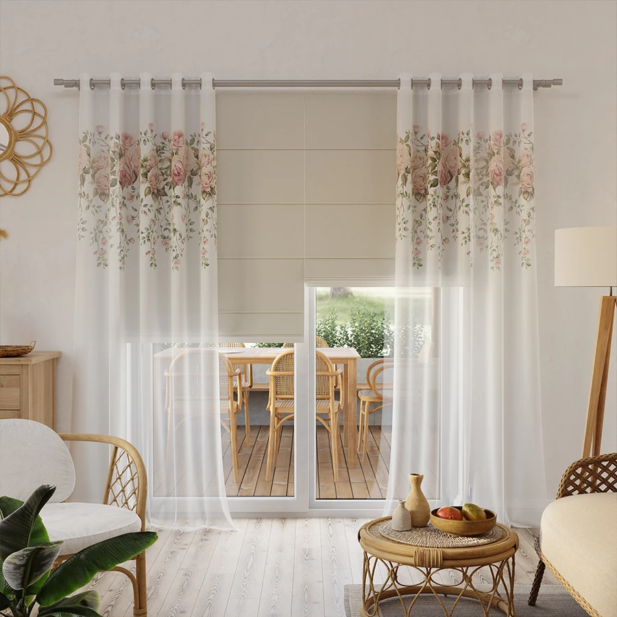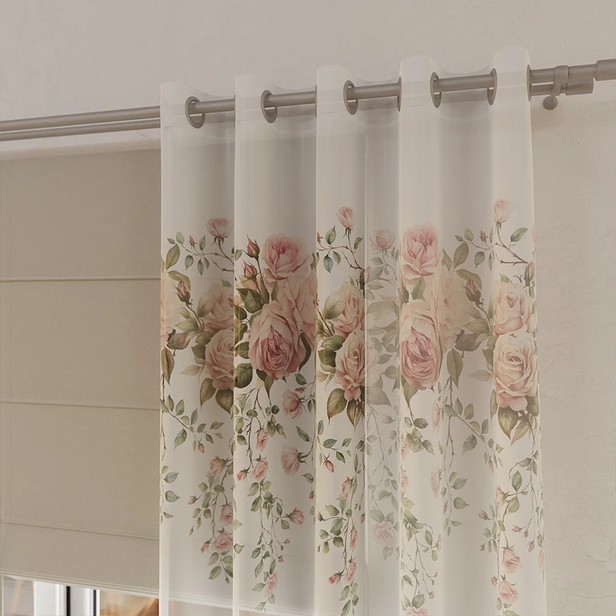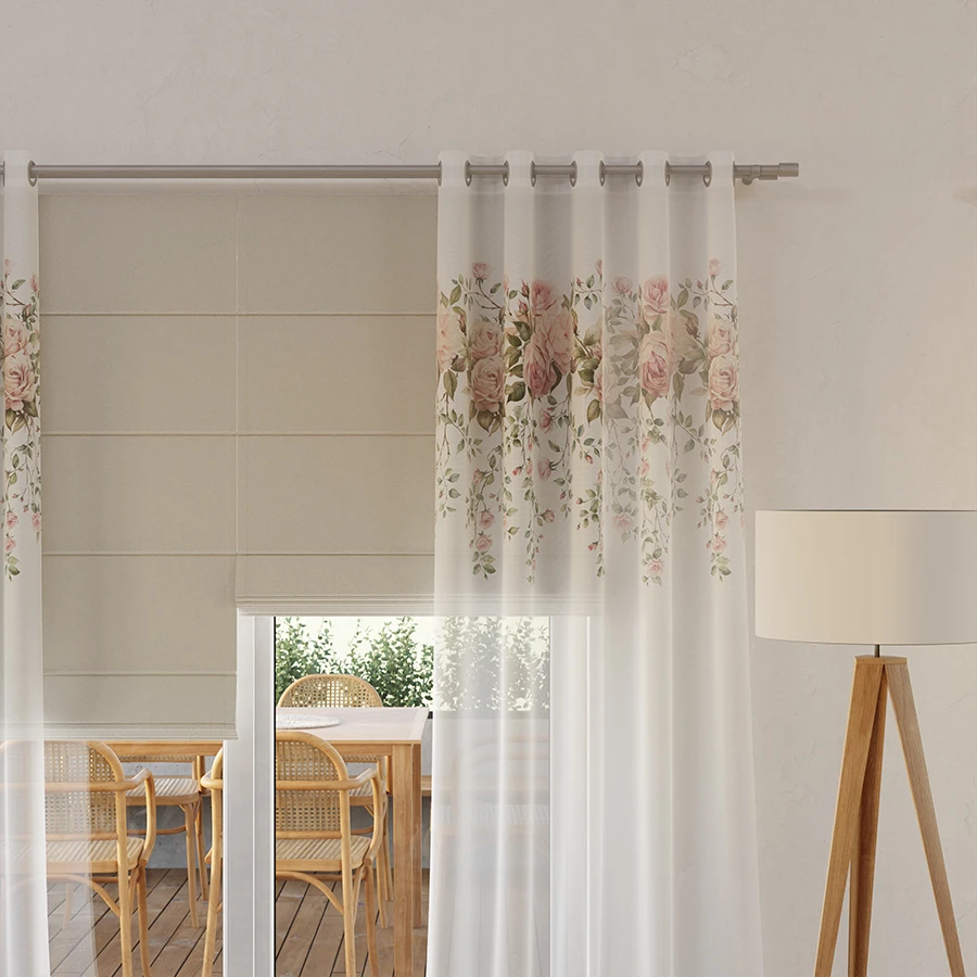 Firanka ROSETTE dostępna jest w dwóch wysokościach, co pozwala dopasować ją do różnych rodzajów okien. Dzięki wykonaniu z firanki woalowej oraz drukowanemu wzorowi kwiatów róży, produkt ten będzie doskonałym dodatkiem do wnętrz o różnym charakterze.