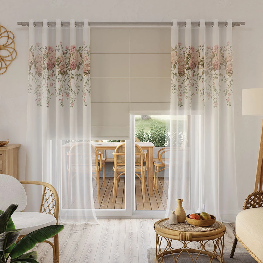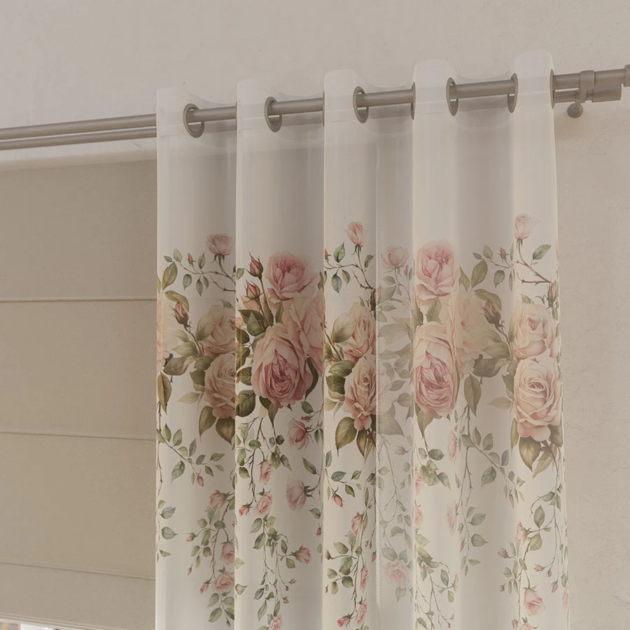 Firanka ROSETTE dostępna jest w dwóch wysokościach, co pozwala dopasować ją do różnych rodzajów okien. Dzięki wykonaniu z firanki woalowej oraz drukowanemu wzorowi kwiatów róży, produkt ten będzie doskonałym dodatkiem do wnętrz o różnym charakterze.
